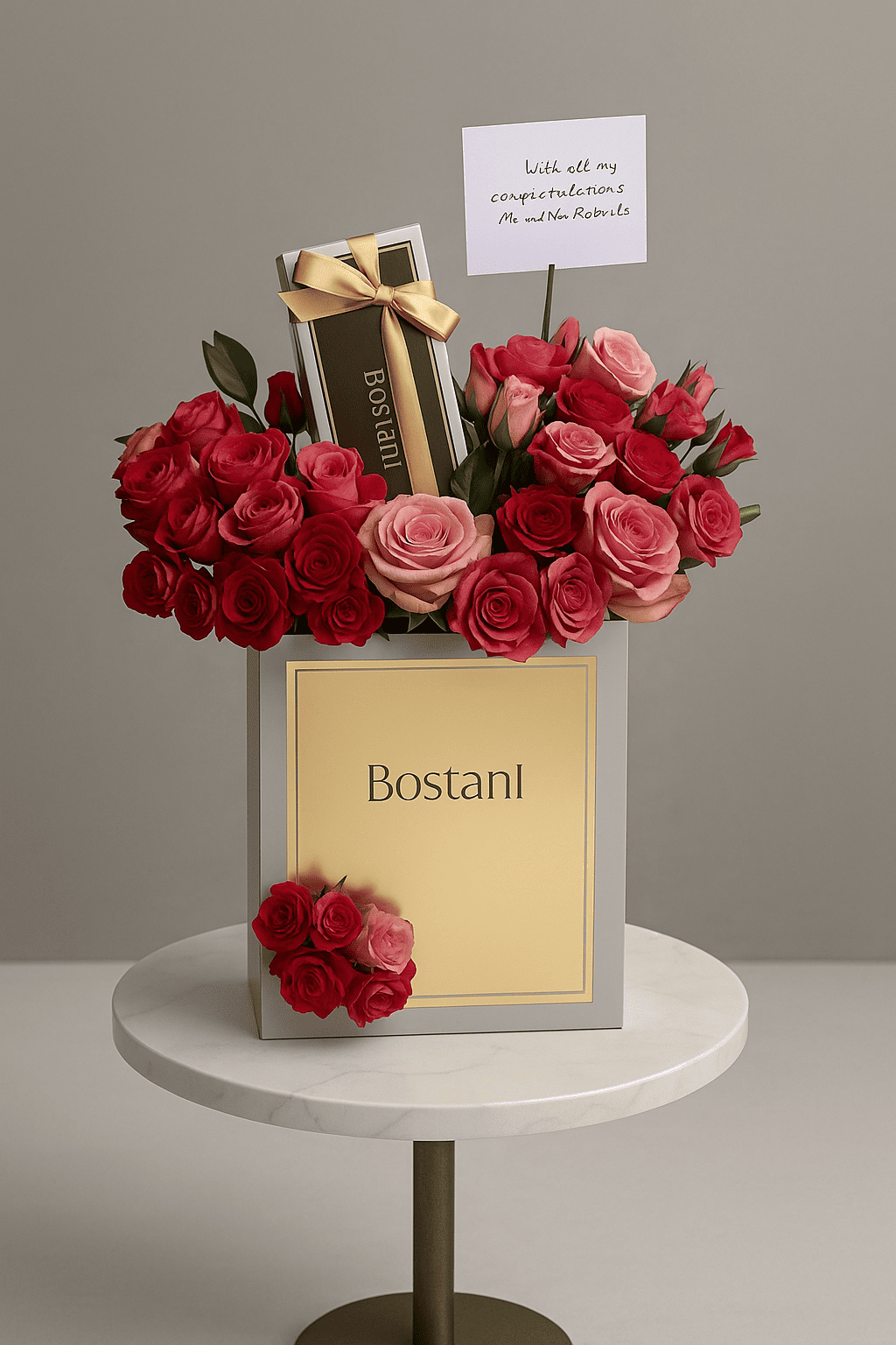 باقة ورود طبيعية ذات ألوان هادئة مع شوكليت بستاني ، مثالية كهدية للتهنئة والمناسابات يتوفر كتابة كرت باللغة العربية والإنجليزية، الرجاء كتابة المطلوب طباعته في الملاحظات