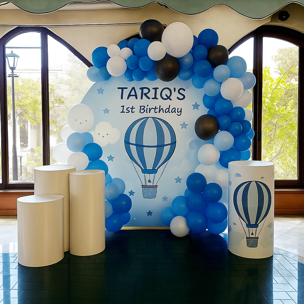 تنسيق حفلة عيد ميلاد مستوحى من المنطاد بألوان زرقاء ناعمة وديكور عيد ميلاد جذاب، مثالي لعيد ميلاد الأطفال واحتفال عيد ميلاد مميز. تصميم غني بالبالونات والخلفيات الجميلة يخلق أجواء مرحة تناسب حفلات أعياد الميلاد، جلسات التصوير، وطاولات الكيك لاحتفال لا يُنسى.تنسيق حفلة عيد ميلاد مستوحى من المنطاد بألوان زرقاء ناعمة وديكور عيد ميلاد جذاب، مثالي لعيد ميلاد الأطفال واحتفال عيد ميلاد مميز. تصميم غني بالبالونات والخلفيات الجميلة يخلق أجواء مرحة تناسب حفلات أعياد الميلاد، جلسات التصوير، وطاولات الكيك لاحتفال لا يُنسى.