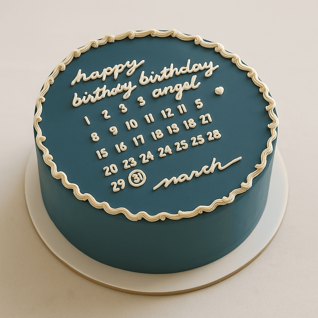 كيكة عيد ميلاد بتصميم تقويم شهر مارس، مع تحديد يوم ورسالة لطيفة، مثالية لإحتفال مميز وراقي