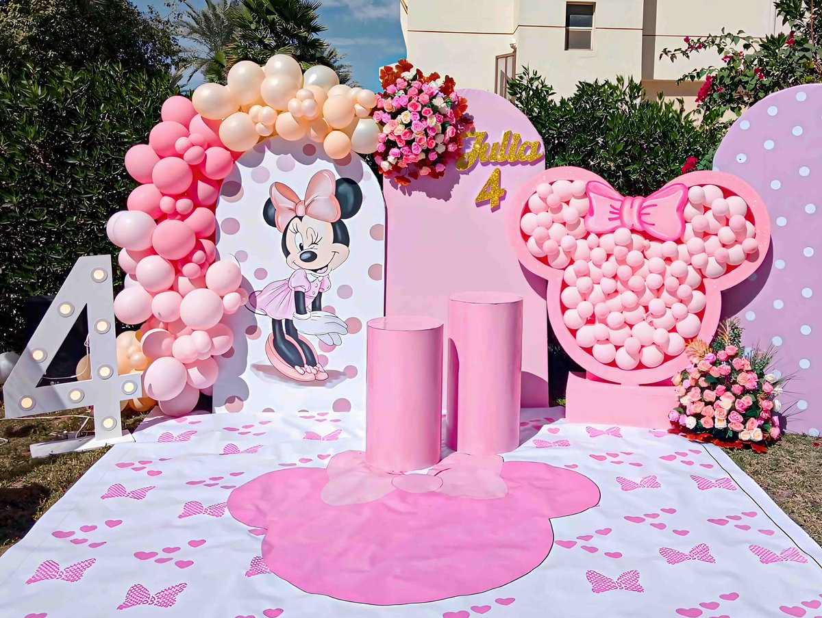 ديكور عيد ميلاد ميني ماوس لطيف مزين ببالونات وردية وإكسسوارات مميزة. مثالي لحفلات أعياد الميلاد للأطفال ويضيف لمسة ساحرة لأي احتفال، مع ديكور جميل يجعل حفلة عيد الميلاد أكثر روعة.ديكور عيد ميلاد ميني ماوس لطيف مزين ببالونات وردية وإكسسوارات مميزة. مثالي لحفلات أعياد الميلاد للأطفال ويضيف لمسة ساحرة لأي احتفال، مع ديكور جميل يجعل حفلة عيد الميلاد أكثر روعة.