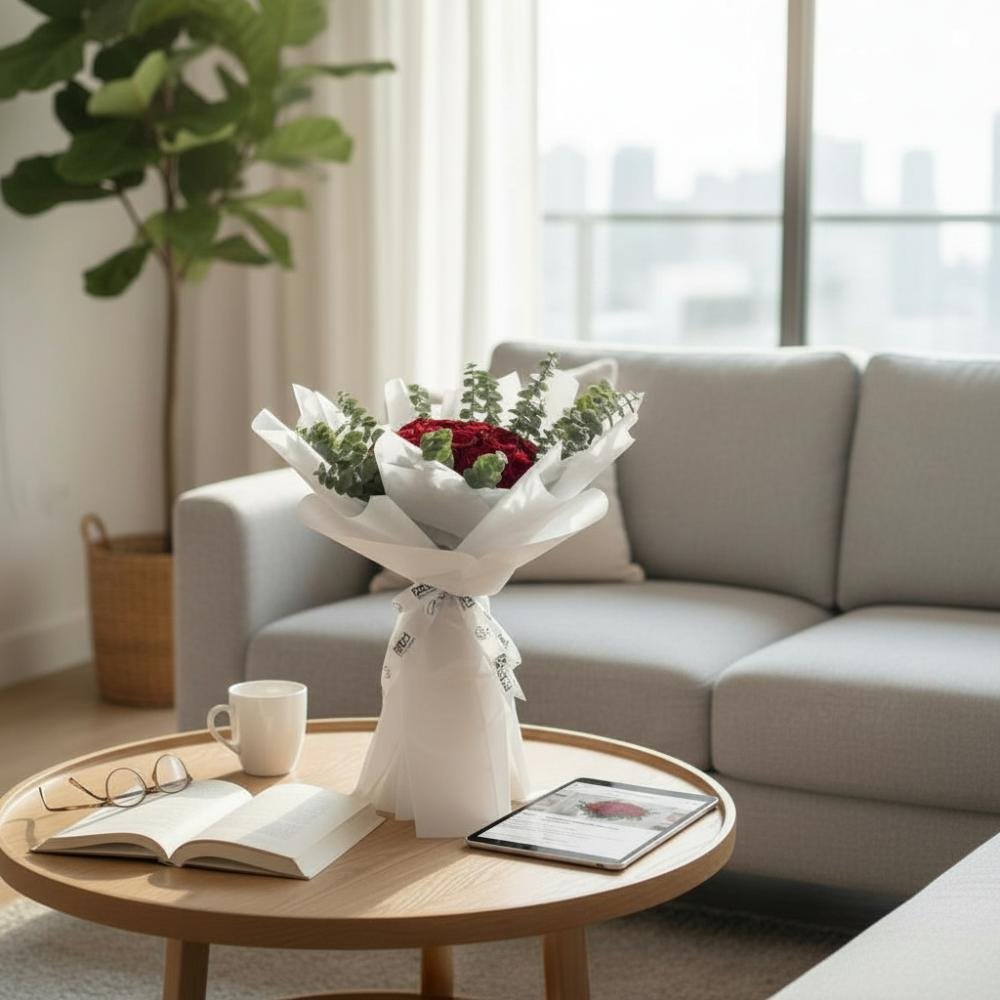 وردة الحب من متجر ليلي تضم 30 بيبي روز أحمر مع 15 غصن أكالبتوس بتنسيق فاخر يعكس الرومانسية والأناقة. هدية مثالية ليوم الحب والمناسبات العاطفية، تجمع بين الجمال الطبيعي ولمسة منعشة.