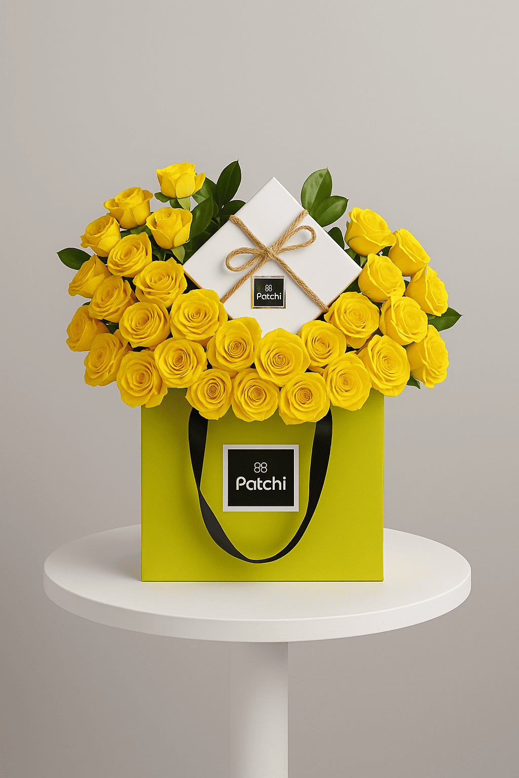 بكج ورود طبيعية ذات ألوان هادئة مع شوكليت باتشي ، مثالية كهدية للتهنئة والمناسبات يتوفر كتابة كرت باللغة العربية والإنجليزية، الرجاء كتابة المطلوب طباعته في الملاحظات