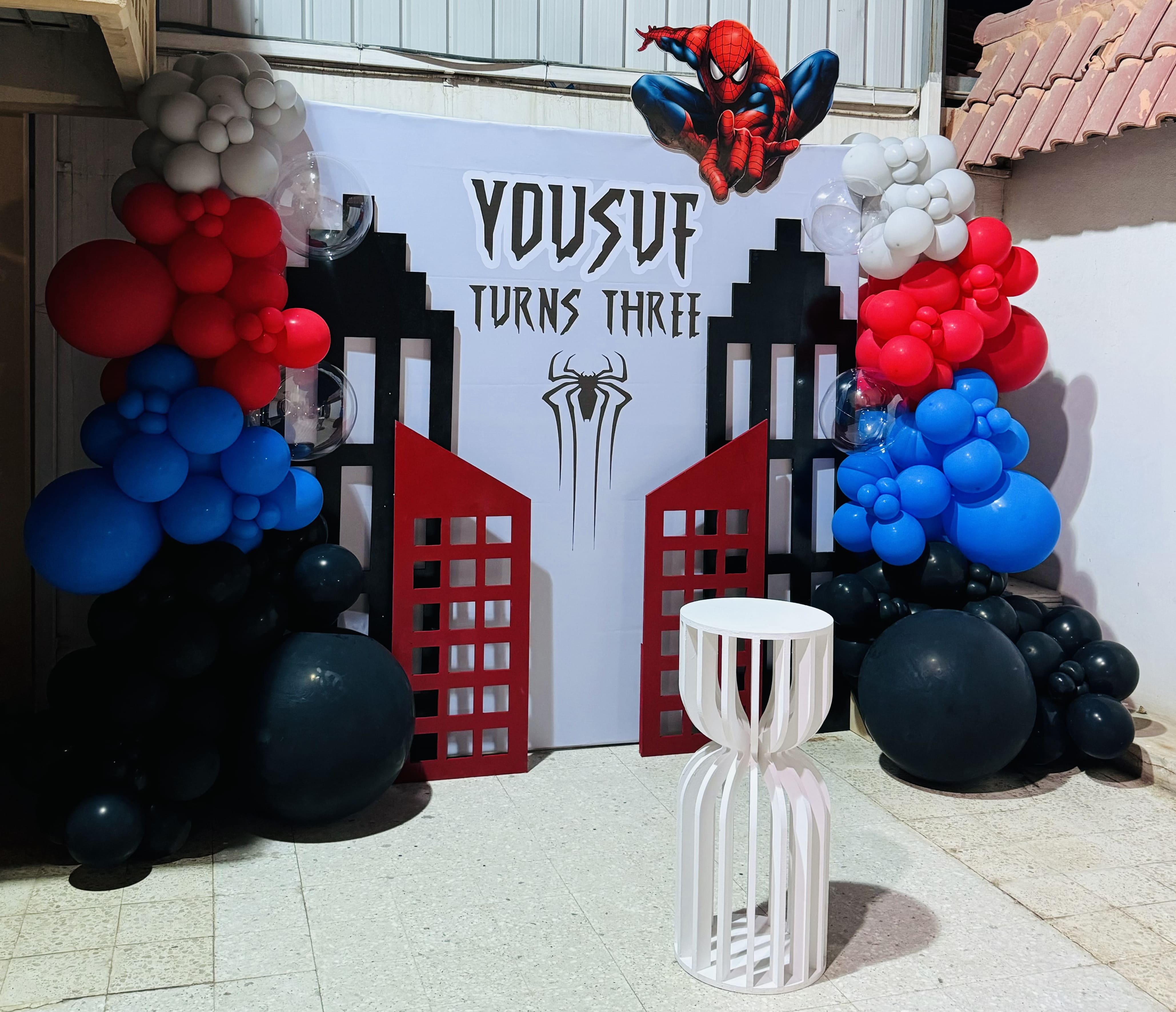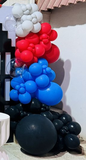ديكور عيد ميلاد للأطفال مستوحى من سبايدرمان مع بالونات حمراء وزرقاء وسوداء وتصميم مدينة الأكشن، مما يضيف أجواء حماسية لحفلة عيد ميلاد ممتعة. مثالي لاحتفال مليء بالإثارة ويلائم حفلات الأطفال ومحبي الشخصيات البطولية.ديكور عيد ميلاد للأطفال مستوحى من سبايدرمان مع بالونات حمراء وزرقاء وسوداء وتصميم مدينة الأكشن، مما يضيف أجواء حماسية لحفلة عيد ميلاد ممتعة. مثالي لاحتفال مليء بالإثارة ويلائم حفلات الأطفال ومحبي الشخصيات البطولية.