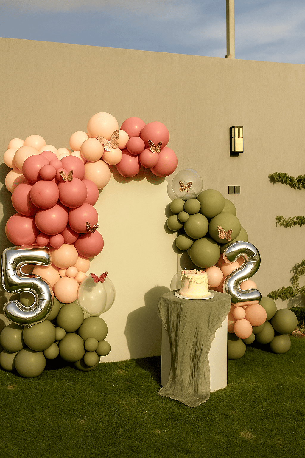 ديكور حفلة عيد ميلاد للأطفال بتصميم فراشات وبالونات بألوان ناعمة. خلفية جميلة للتصوير وزينة مثالية لحفلات عيد الميلاد تضيف أجواء ساحرة ومناسبة للاحتفال الخارجي وتجعل حفلة عيد الميلاد مميزة ولا تُنسى.ديكور حفلة عيد ميلاد للأطفال بتصميم فراشات وبالونات بألوان ناعمة. خلفية جميلة للتصوير وزينة مثالية لحفلات عيد الميلاد تضيف أجواء ساحرة ومناسبة للاحتفال الخارجي وتجعل حفلة عيد الميلاد مميزة ولا تُنسى.