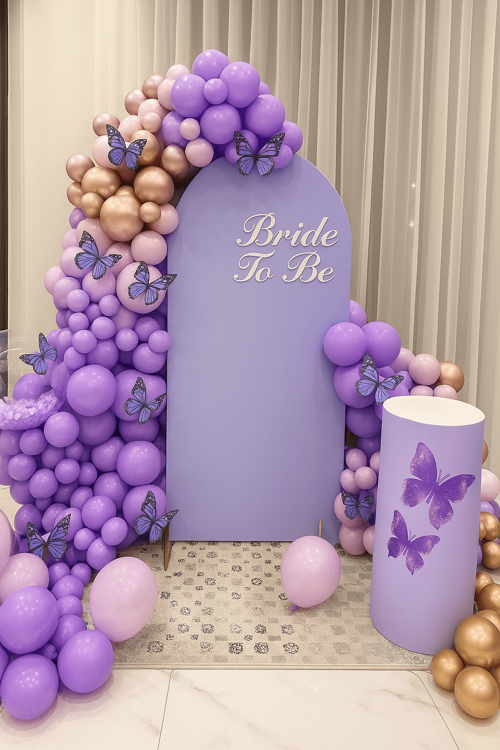 ديكور العروس بالفراشات يجمع بين البنفسجي والذهبي الوردي بأجواء ناعمة وساحرة. مثالي لحفلات التوديع أو الخطوبة، يعطي لمسة أنثوية حالمة تخلي المناسبة مليانة سعادة وجمال وتبقى ذكرى ما تنسى.ديكور العروس بالفراشات يجمع بين البنفسجي والذهبي الوردي بأجواء ناعمة وساحرة. مثالي لحفلات التوديع أو الخطوبة، يعطي لمسة أنثوية حالمة تخلي المناسبة مليانة سعادة وجمال وتبقى ذكرى ما تنسى.