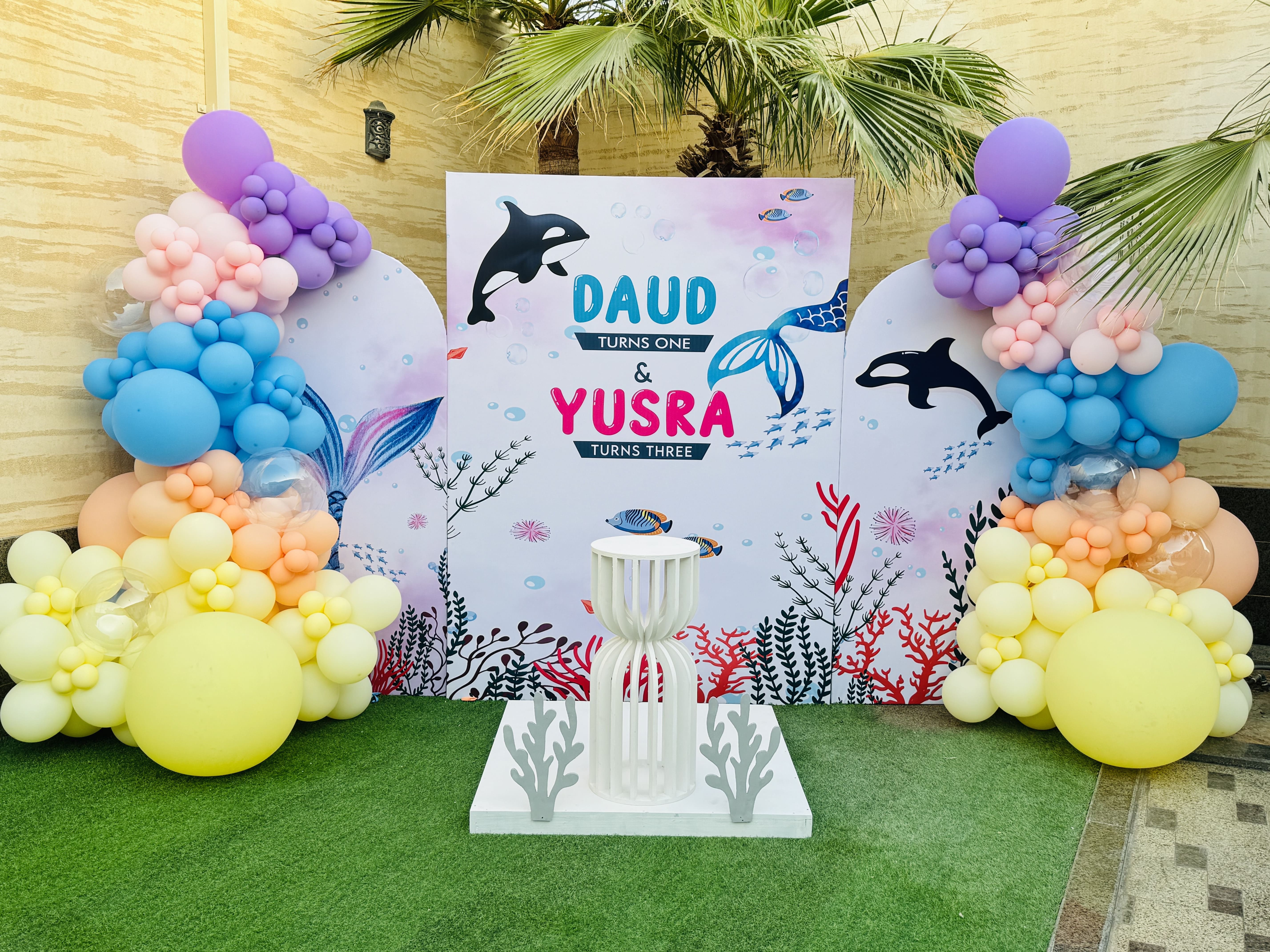 ديكور عيد ميلاد للأطفال مستوحى من عالم تحت البحر مع بالونات ملوّنة وحيتان وزينة مرحة. تصميم مثالي لإحياء أجواء احتفال مميزة تزيد من جمال حفلة عيد الميلاد وتجعل تجربة الاحتفال ممتعة للأطفال.ديكور عيد ميلاد للأطفال مستوحى من عالم تحت البحر مع بالونات ملوّنة وحيتان وزينة مرحة. تصميم مثالي لإحياء أجواء احتفال مميزة تزيد من جمال حفلة عيد الميلاد وتجعل تجربة الاحتفال ممتعة للأطفال.
