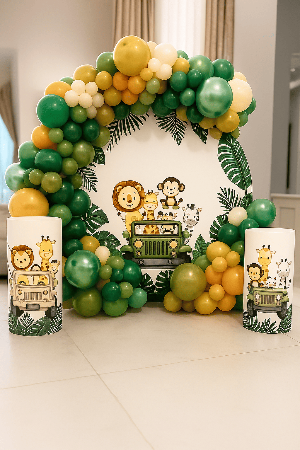 تجهيز عيد ميلاد مستوحى من أجواء الغابة مع ديكور سفاري لطيف وبالونات خضراء. مثالي لحفلات عيد ميلاد الأطفال ولإضافة أجواء مرحة ومميزة. تنسيق رائع يجعل احتفال عيد الميلاد تجربة لا تُنسىتجهيز عيد ميلاد مستوحى من أجواء الغابة مع ديكور سفاري لطيف وبالونات خضراء. مثالي لحفلات عيد ميلاد الأطفال ولإضافة أجواء مرحة ومميزة. تنسيق رائع يجعل احتفال عيد الميلاد تجربة لا تُنسى