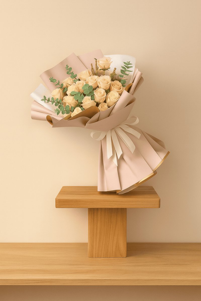 تتكون الباقة من ورد جوري سوباتي عدد 6 + بيبي جوري كيني عدد 15 + كازا بلانكا هولندي عدد 1