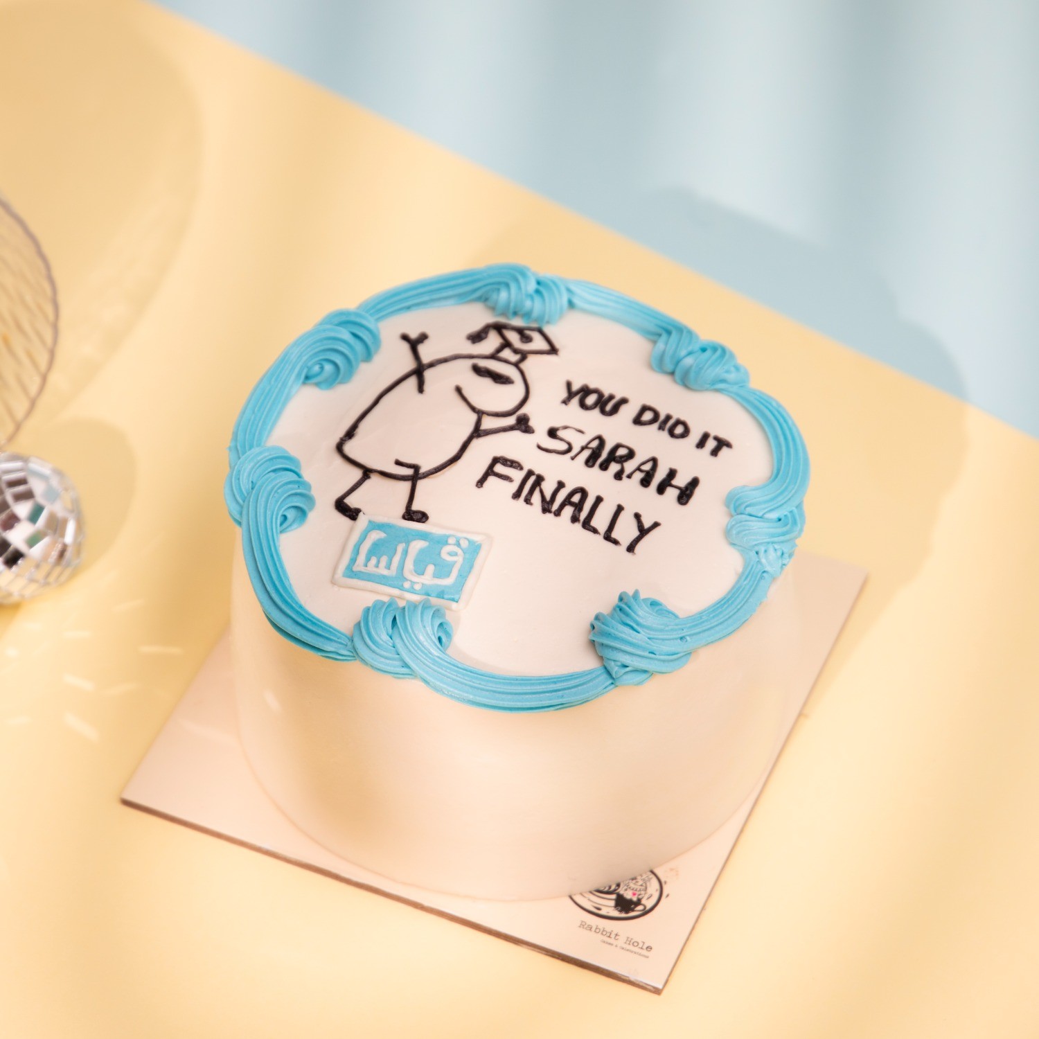 كيكة مقاس ٥ إنش بحشوة من اختيارك الكتابة على الكيكة (حد أقصى ٣ كلمات) يمكن تغيير لون الكريمة الجانبية الحساسية: البيض، مشتقات الحليب، الجيلاتين