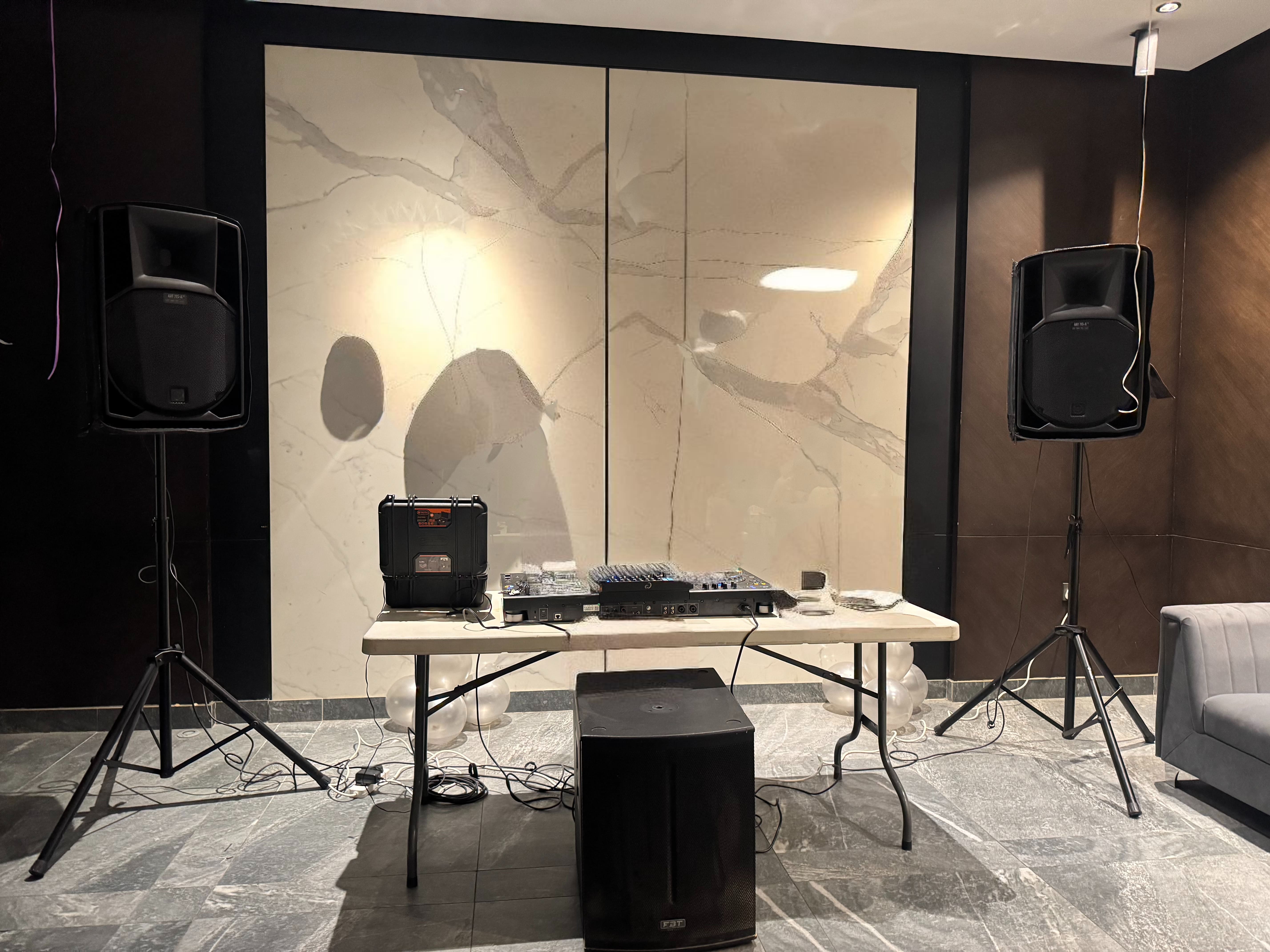 سيت اب كامل يشمل كل من - سماعتين - سوب ووفر ( مضخم صوت ) - ميكسر يشمل التوصيل والتركيب مدة الايجار ٢٤ ساعة