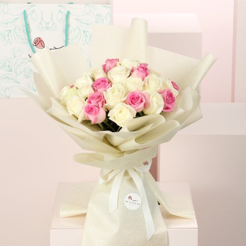 باقة ورد مكونه من ٢٠ وردة بيضاء و ٢٠ وردة وردية. تُعتبر هذه الباقة مثالية للتعبير عن المشاعر الرقيقة في المناسبات الخاصة مثل حفلات الخطوبة والزفاف، أو لتزيين الأماكن الفاخرة
