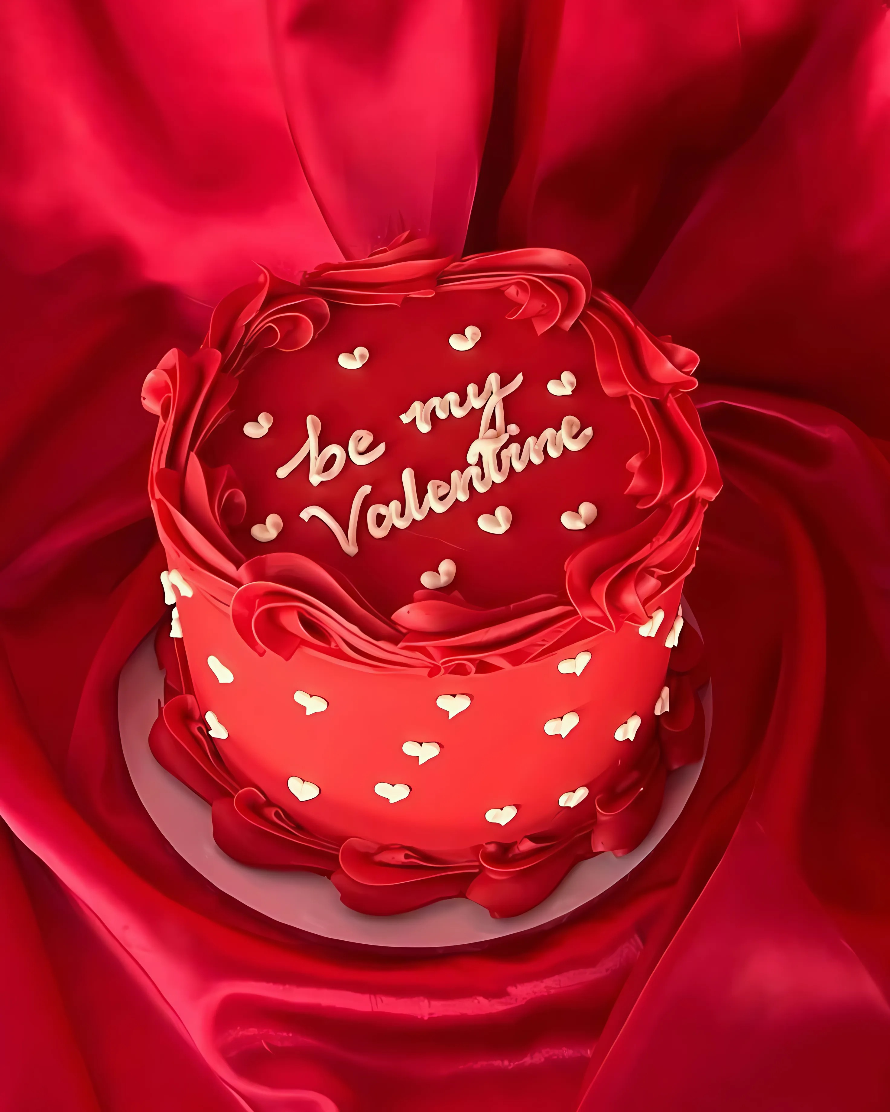 كيكة حمراء جريئة مزينة بقلوب ورسالة "Be My Valentine"، طريقة لذيذة للتعبير عن الحب بالمذاق.