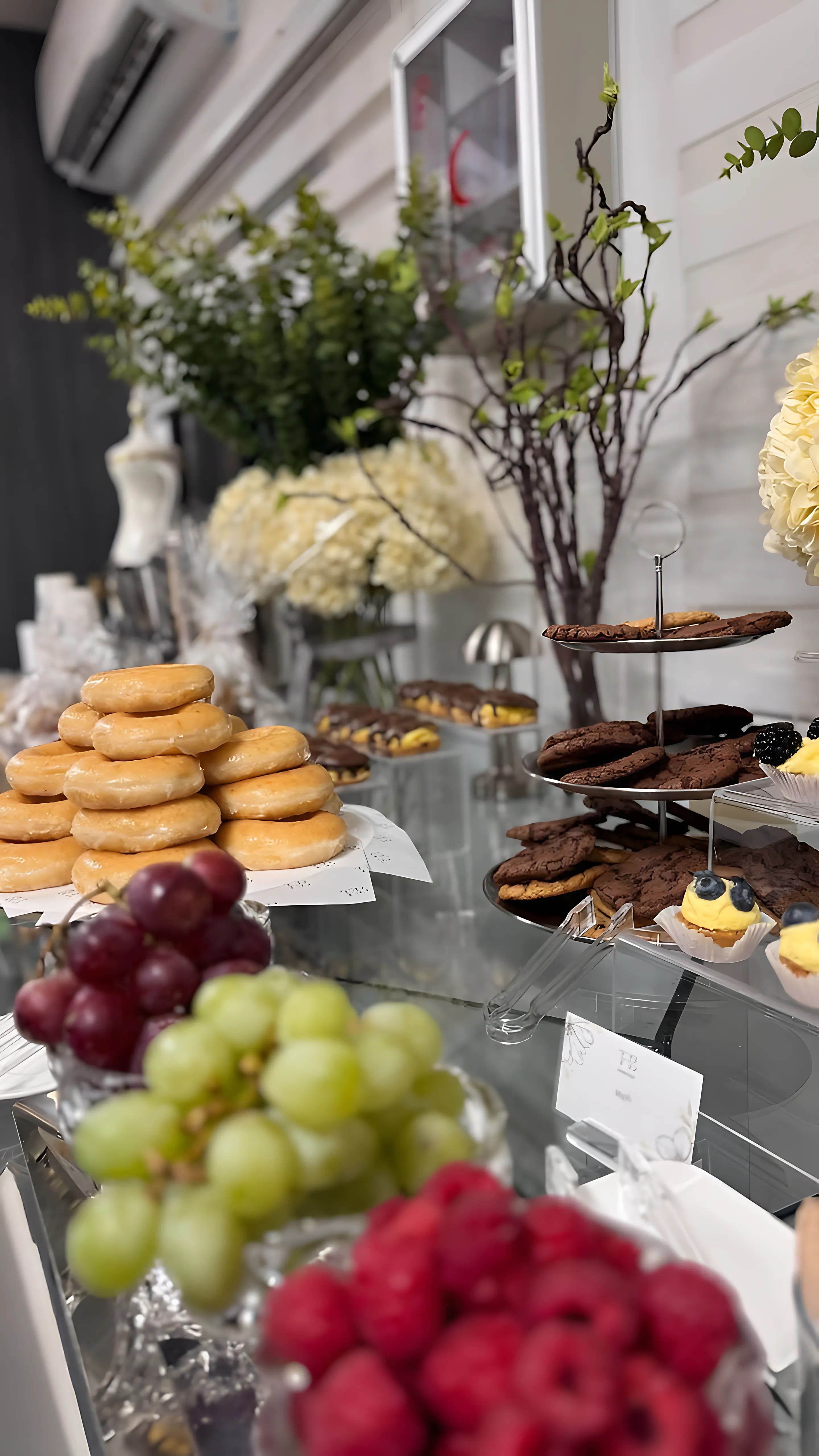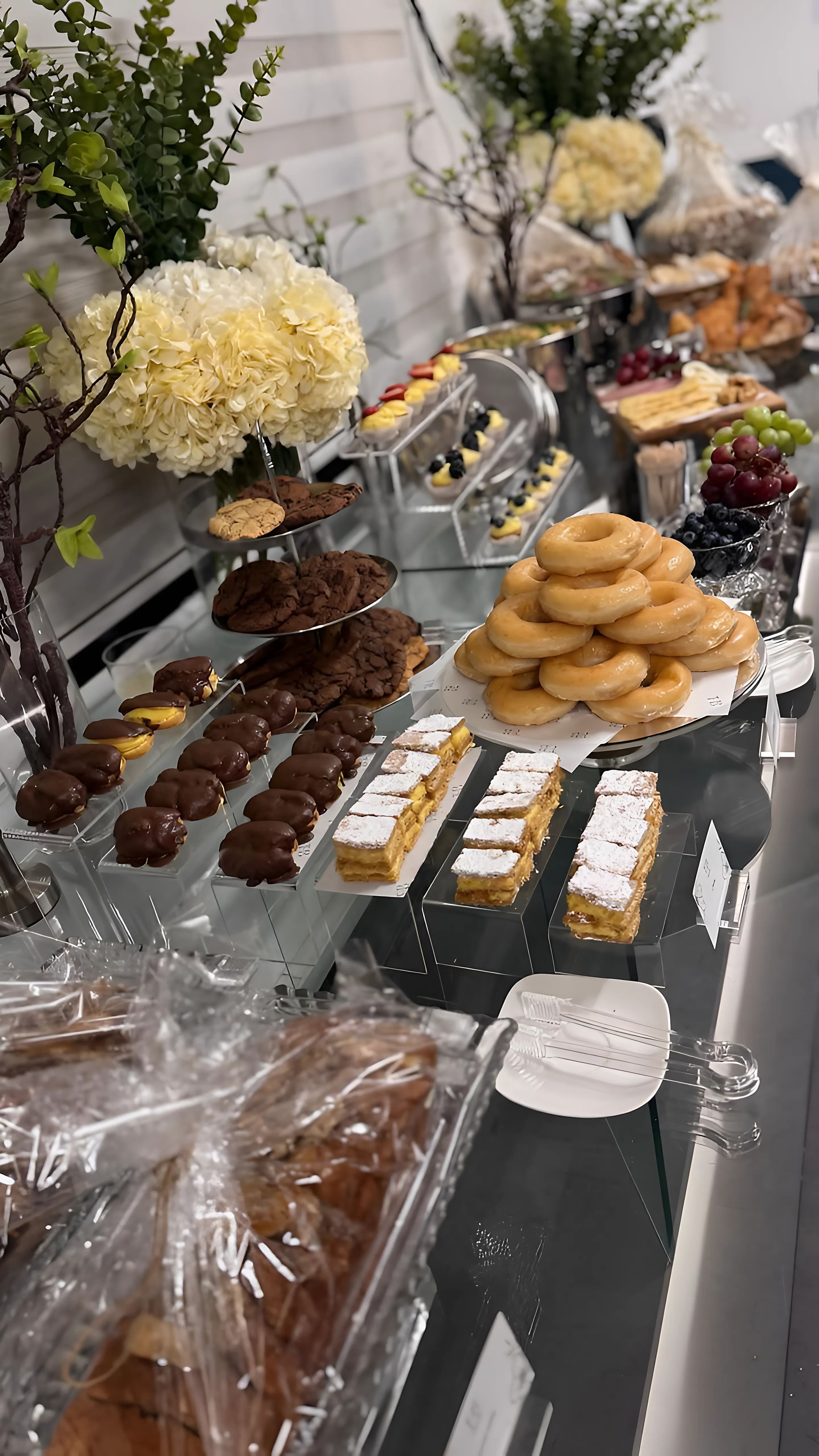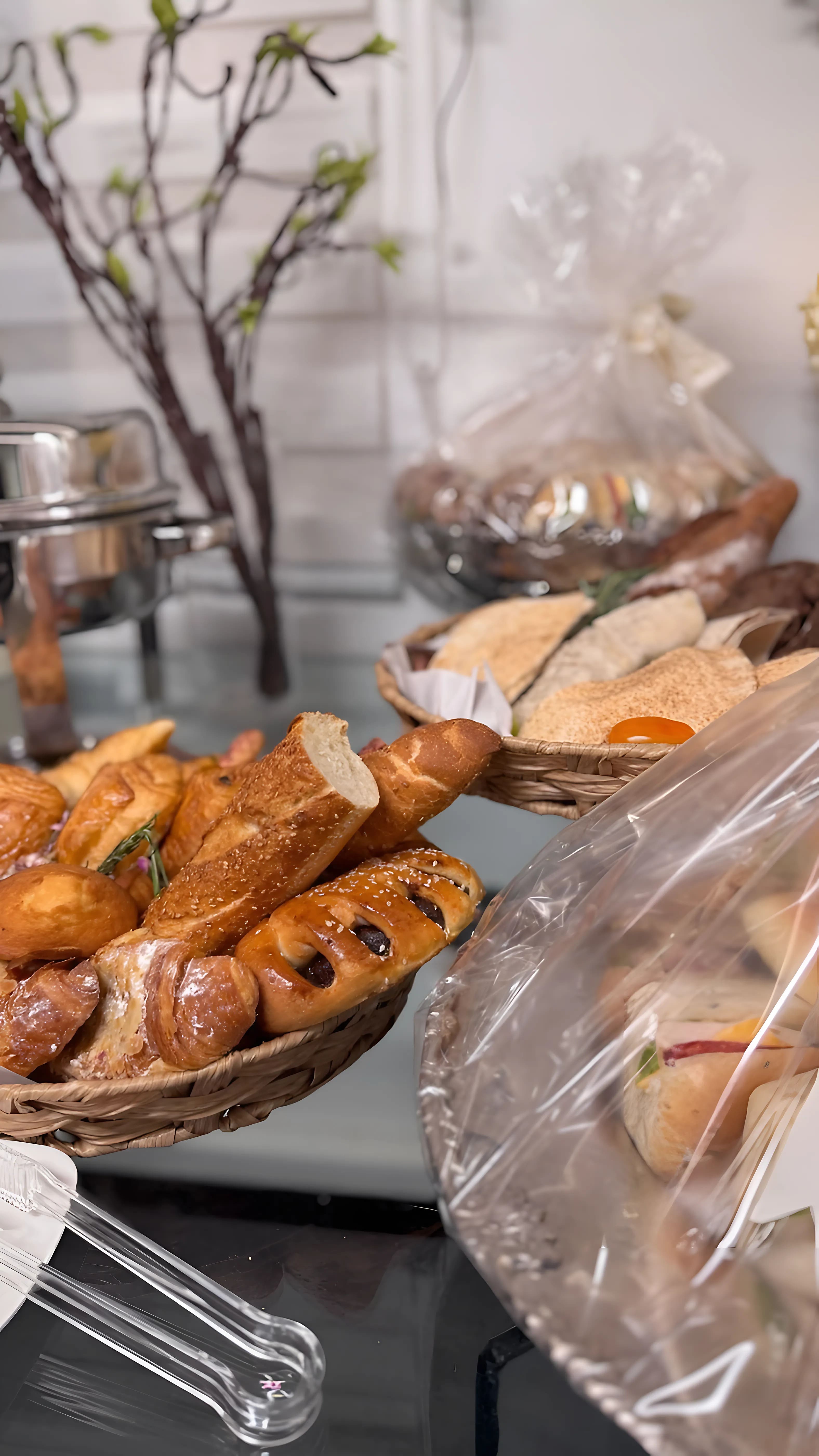 المأكولات: • أصناف سندويشات متنوعة من دقيق البر والدقيق الأبيض، بحشوات مختلفة: o سبايسي تونة o دجاج o فلافل o تركي مدخن o أجبان • سلة مخبوزات متنوعة • تشكيلة من الفواكه الطازجة • فطائر منوّعة الحلويات: • ميلفيه بالكاسترد • تارت مشكل • إكلير محشو بالشوكولاتة • كيك طازج • دونات • كوكيز المشروبات: • جميع البكجات تتضمن مشروبات ساخنة وباردة