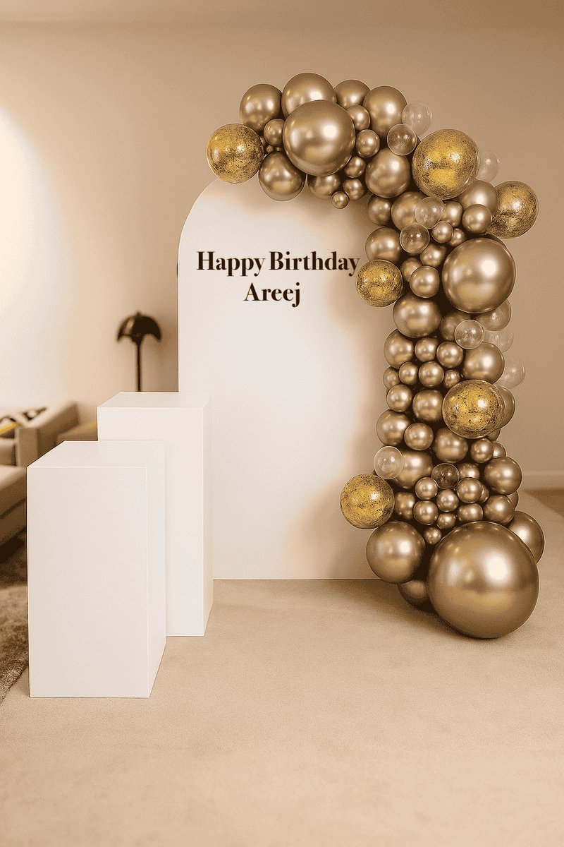ديكور ذهبي فاخر صُمم خصيصًا للاحتفال تناغم الألوان المعدنية مع البساطة العصرية يضفي لمسة من الأناقة والفخامة، ليجعل المناسبة مليئة بالجمال والفرحديكور ذهبي فاخر صُمم خصيصًا للاحتفال تناغم الألوان المعدنية مع البساطة العصرية يضفي لمسة من الأناقة والفخامة، ليجعل المناسبة مليئة بالجمال والفرح