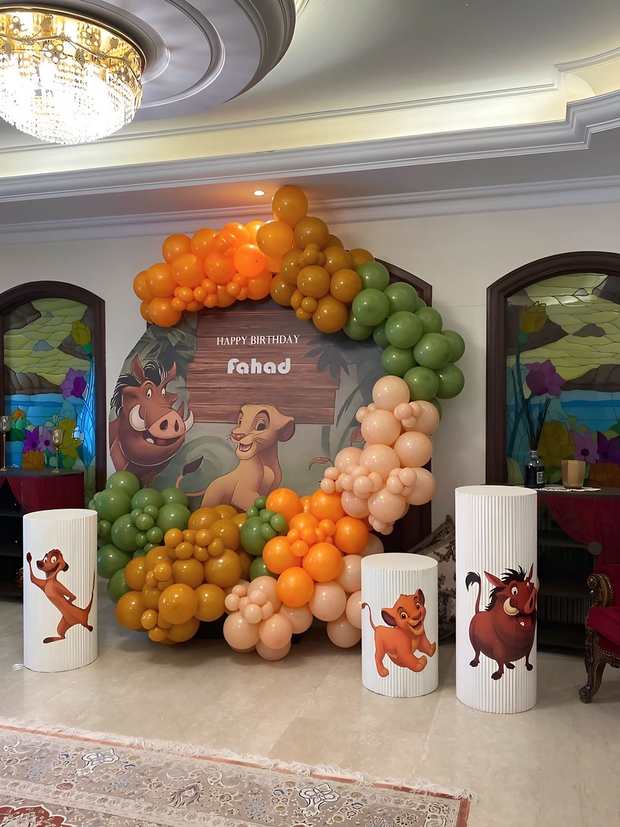 ديكور عيد ميلاد مستوحى من الملك الأسد بلمسات مليئة بالألوان وبشخصيات سمبا وتيمون وبومبا، مع بالونات بأجواء الغابة. مثالي لحفلات الأطفال ولإضافة جو ممتع ومليء بالمغامرة لأي احتفال بعيد ميلاد.ديكور عيد ميلاد مستوحى من الملك الأسد بلمسات مليئة بالألوان وبشخصيات سمبا وتيمون وبومبا، مع بالونات بأجواء الغابة. مثالي لحفلات الأطفال ولإضافة جو ممتع ومليء بالمغامرة لأي احتفال بعيد ميلاد.