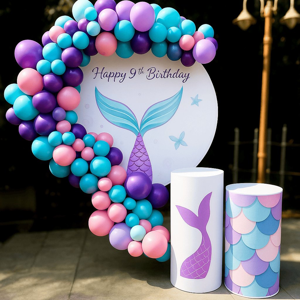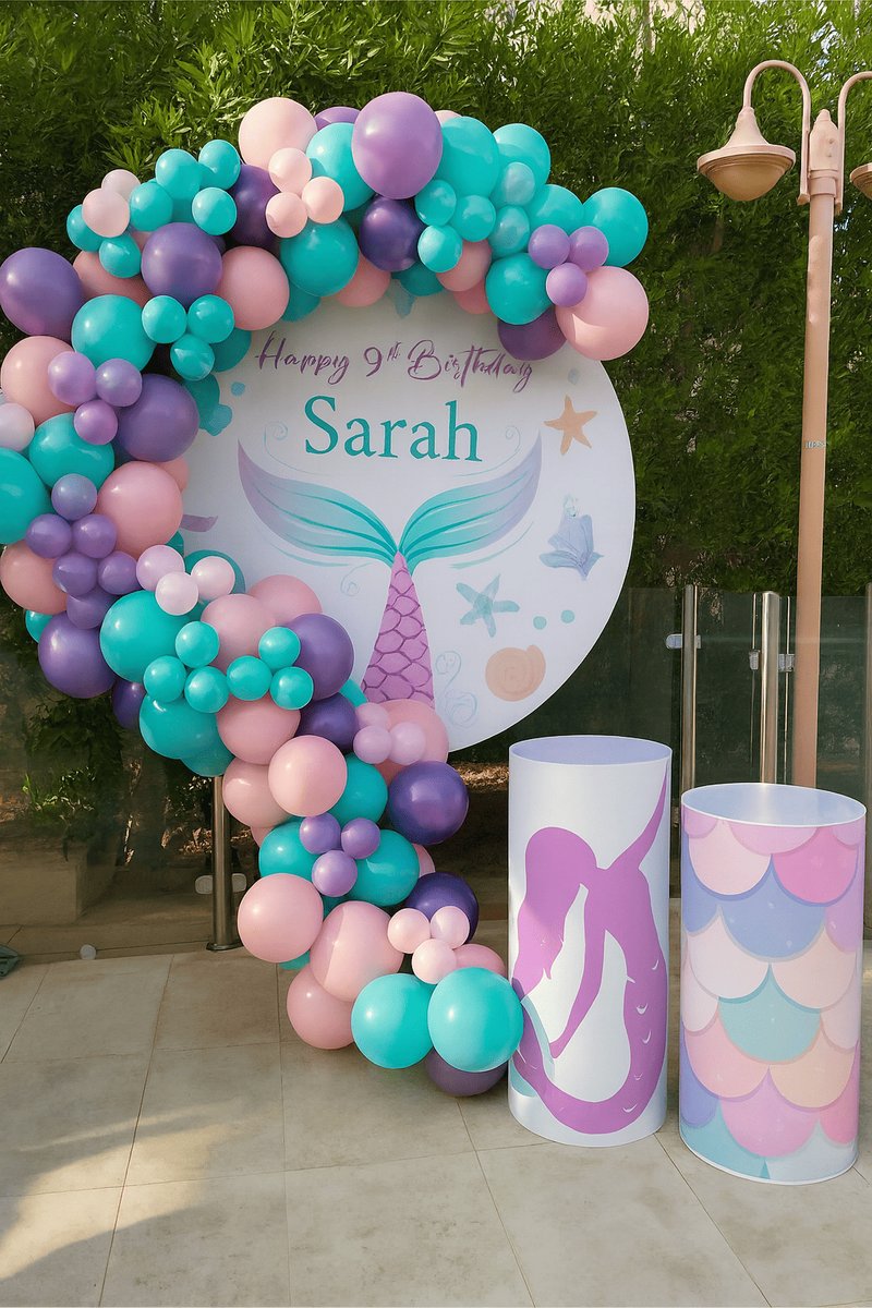 تزيين عيد ميلاد مستوحى من عالم حورية البحر مع بالونات بألوان باستيل وخلفية بحرية ساحرة. مثالي لحفلات عيد الميلاد للأطفال ولتجهيز ديكور يضيف أجواء بحرية مميزة للاحتفال بعيد الميلاد.تزيين عيد ميلاد مستوحى من عالم حورية البحر مع بالونات بألوان باستيل وخلفية بحرية ساحرة. مثالي لحفلات عيد الميلاد للأطفال ولتجهيز ديكور يضيف أجواء بحرية مميزة للاحتفال بعيد الميلاد.