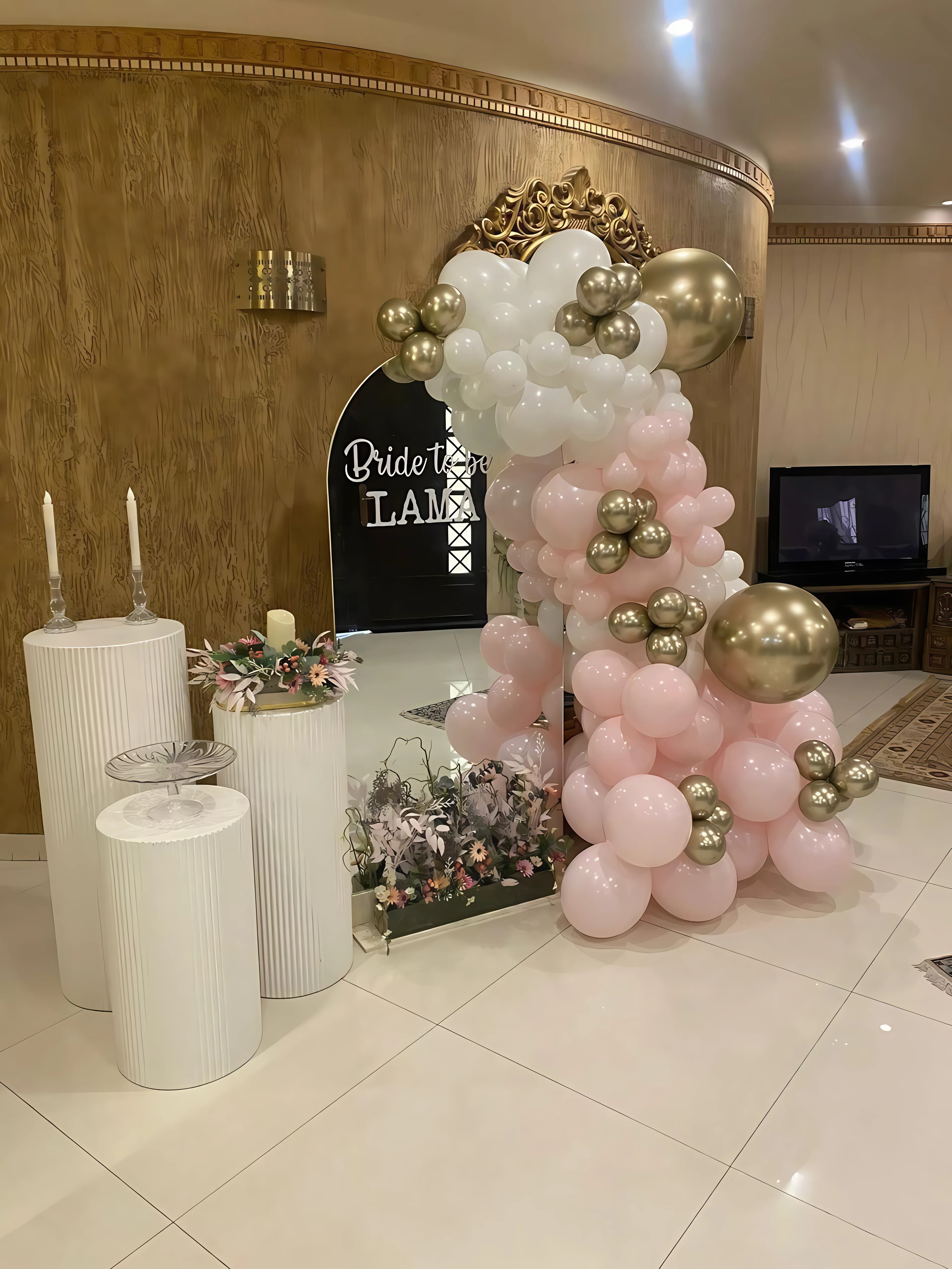 ديكور العروس الوردي يجمع بين درجات الوردي والأبيض والذهبي بلمسة ناعمة وفخمة. مثالي لحفلات التوديع أو الخطوبة الصغيرة، يضيف أجواء رومانسية وأنيقة تخلي المناسبة مليانة حب وجمال وتبقى ذكرى ما تنسى.ديكور العروس الوردي يجمع بين درجات الوردي والأبيض والذهبي بلمسة ناعمة وفخمة. مثالي لحفلات التوديع أو الخطوبة الصغيرة، يضيف أجواء رومانسية وأنيقة تخلي المناسبة مليانة حب وجمال وتبقى ذكرى ما تنسى.