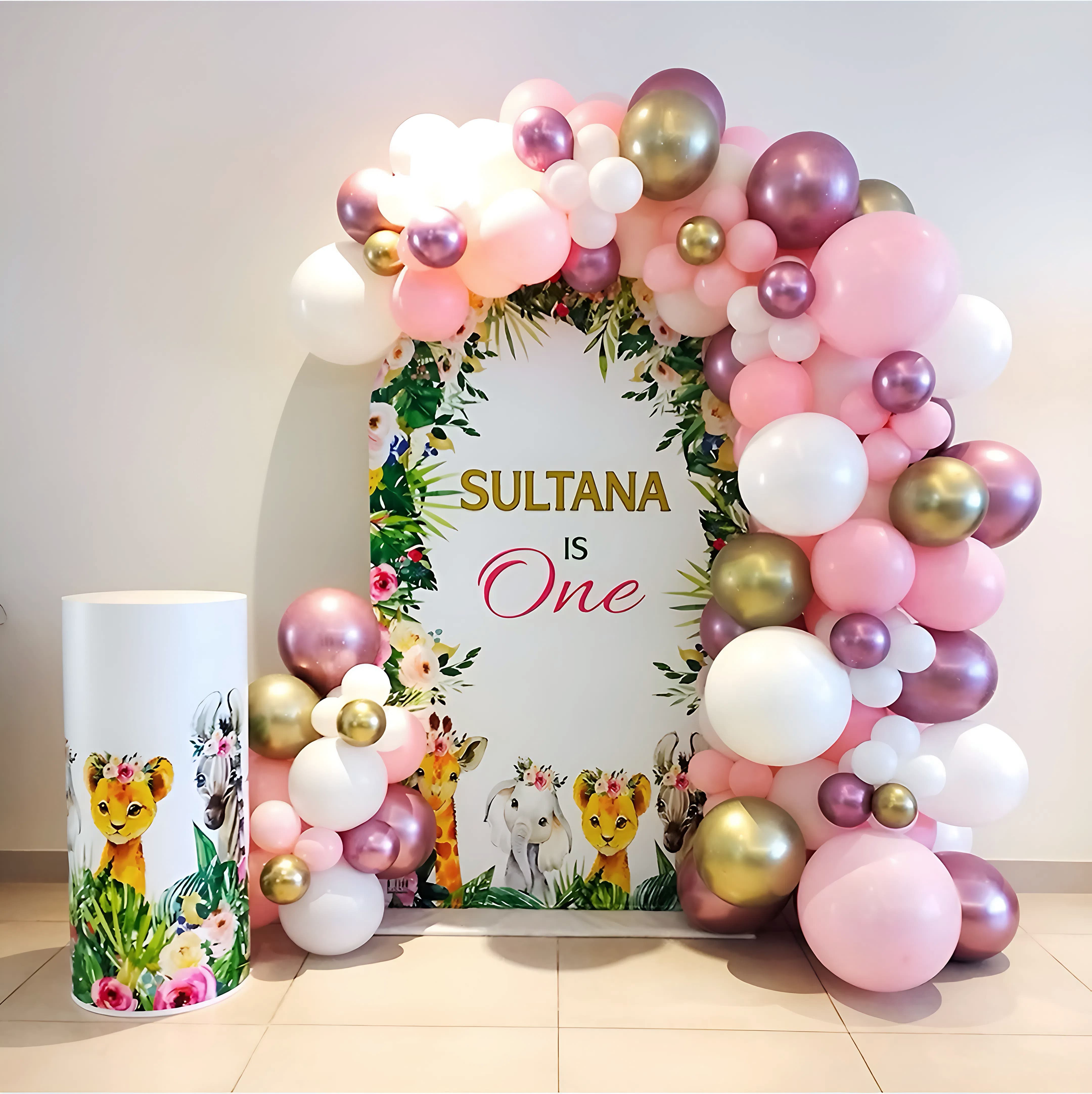 تنسيق عيد ميلاد سفاري ممتع بلمسات الغابة والحيوانات والبالونات الملونة. مناسب لحفلات عيد ميلاد الأطفال والاحتفالات ذات الطابع الحيواني. مثالي لصنع أجواء مرحة ومميزة لحفلة عيد الميلاد.تنسيق عيد ميلاد سفاري ممتع بلمسات الغابة والحيوانات والبالونات الملونة. مناسب لحفلات عيد ميلاد الأطفال والاحتفالات ذات الطابع الحيواني. مثالي لصنع أجواء مرحة ومميزة لحفلة عيد الميلاد.