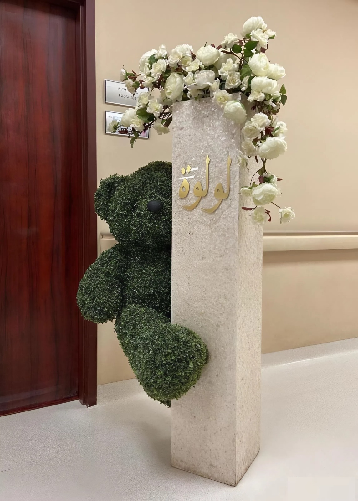 ستاند ترحيبي أنيق للمولودة بتنسيق زهور بيضاء ناعمة ولمسات خضراء طبيعية مع خط عربي راقٍ، مثالي لمداخل المستشفيات ومناسبات استقبال المواليد، ليمنح أجواء دافئة وراقية تعبّر عن الفرح والبدايات الجميلة.