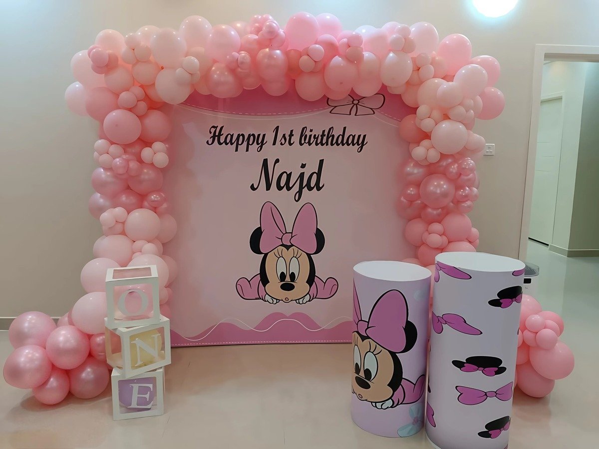 ديكور حفلة عيد ميلاد ميني باللون الوردي مع بالونات جميلة وتصميم لطيف يناسب حفلات عيد ميلاد الأطفال. خلفية مميزة للتصوير والاحتفال تضيف لمسة رائعة لحفلة عيد الميلاد، وتمنح أجواء مبهجة وذكريات جميلة للأطفال.ديكور حفلة عيد ميلاد ميني باللون الوردي مع بالونات جميلة وتصميم لطيف يناسب حفلات عيد ميلاد الأطفال. خلفية مميزة للتصوير والاحتفال تضيف لمسة رائعة لحفلة عيد الميلاد، وتمنح أجواء مبهجة وذكريات جميلة للأطفال.