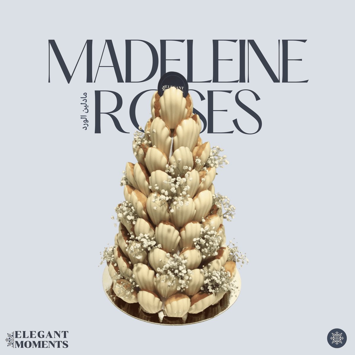 هرم مادلين مزين بالورد - من ٦٠ الى ٦٥ قطعة - بنكهة الشوكولاتة البيضاء