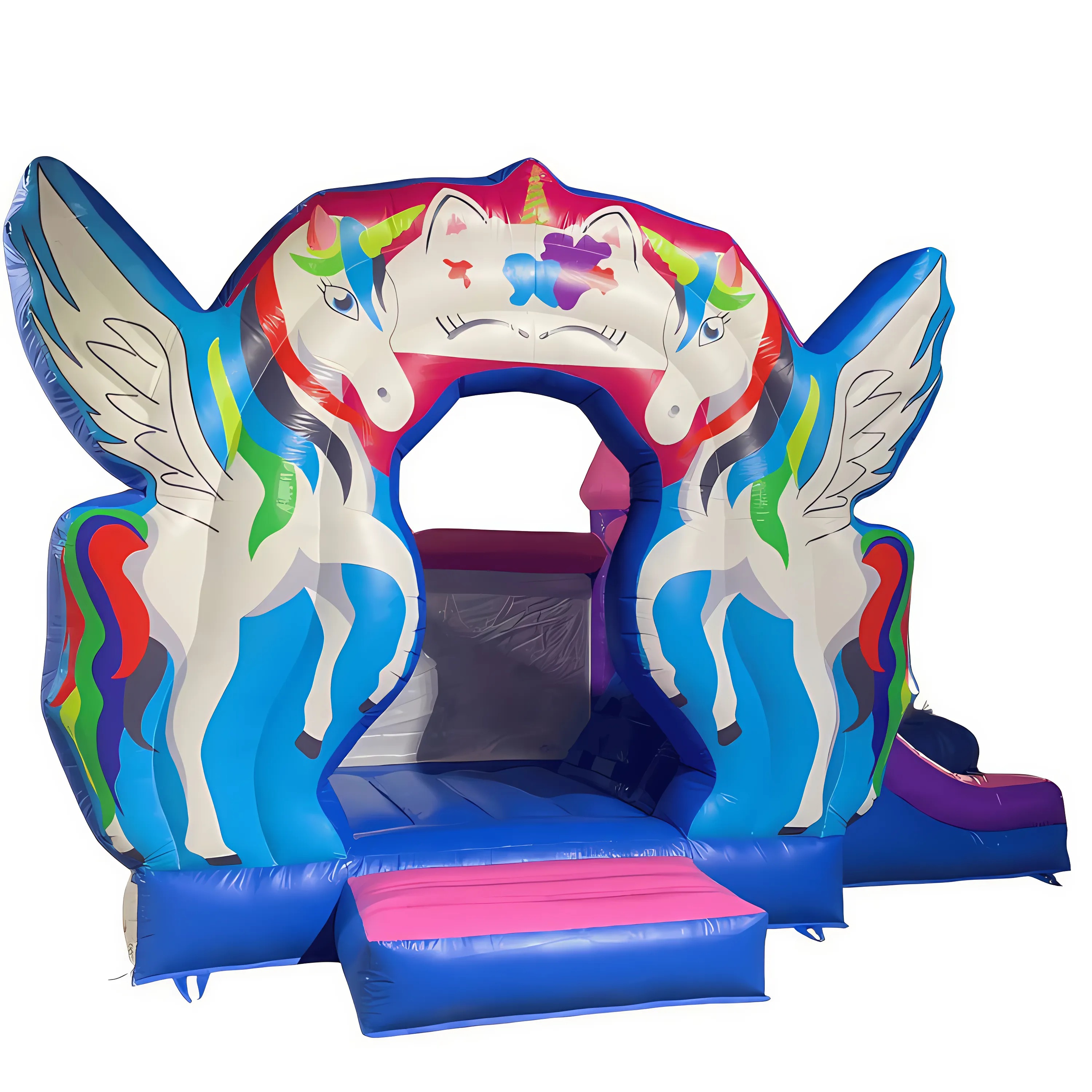 نطيطة اليونيكورن بتصميم ساحر مستوحى من أحصنة اليونيكورن المجنحة بألوان زاهية، مثالية لإضافة أجواء خيالية، المقاسات : - طول 4 متر - عرض6 متر - ارتفاع 3 متر * مدة الايجار 24 ساعة * توفير مصدر كهربائي 220 فولت قري من موقع تركيب الألعاب