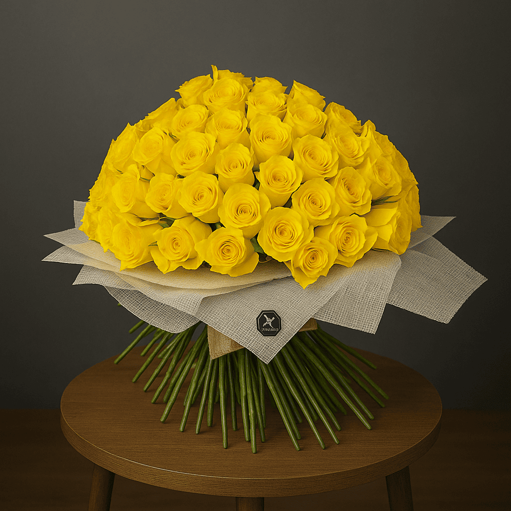 باقة فاخرة من 150 وردة جوري صفراء، تجسد الفرح والتفاؤل وتمنح شعورًا بالطاقة المشرقة في كل مناسبة.