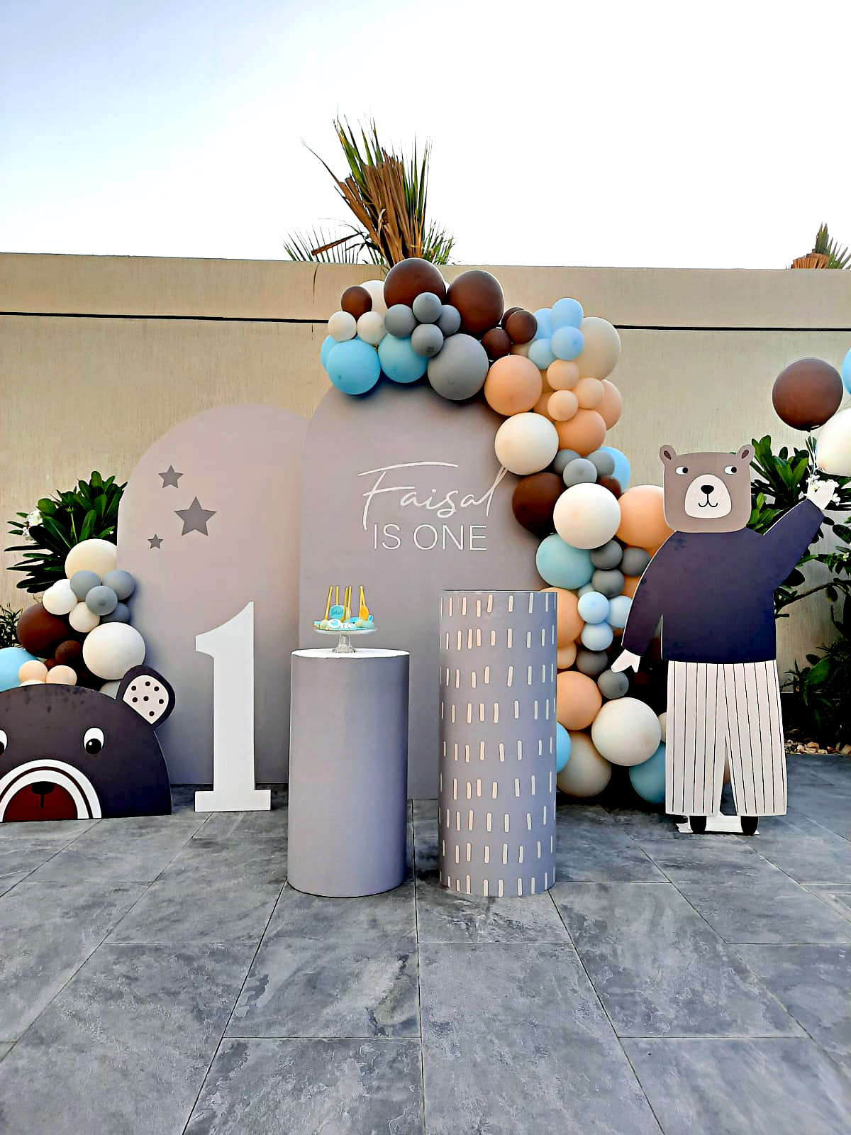 تنسيق عيد ميلاد أول بتصميم دب لطيف وبالونات ناعمة بألوان محايدة مع ديكور جذاب وخلفيات عصرية. مثالي للاحتفال بمرحلة طفلك الأولى بأجواء دافئة وتصميم جميل يناسب الصور والذكريات.تنسيق عيد ميلاد أول بتصميم دب لطيف وبالونات ناعمة بألوان محايدة مع ديكور جذاب وخلفيات عصرية. مثالي للاحتفال بمرحلة طفلك الأولى بأجواء دافئة وتصميم جميل يناسب الصور والذكريات.