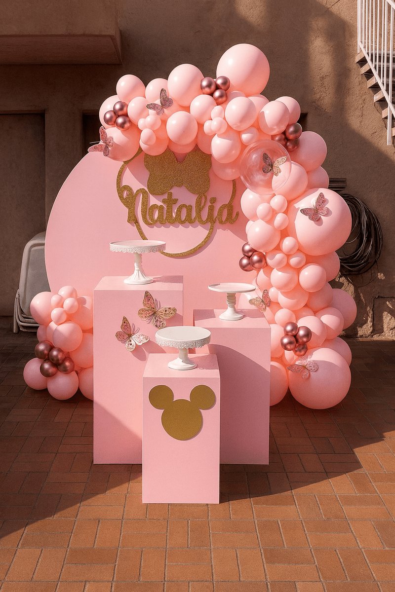 تجهيز عيد ميلاد أنيق بديكور فراشات وردية وبالونات ناعمة وحوامل جميلة. يمنح أجواء مرحة ورقيقة لحفلات البنات. مثالي للاحتفال بعيد ميلاد مميز مع تنسيق أنثوي راقٍ وجميلتجهيز عيد ميلاد أنيق بديكور فراشات وردية وبالونات ناعمة وحوامل جميلة. يمنح أجواء مرحة ورقيقة لحفلات البنات. مثالي للاحتفال بعيد ميلاد مميز مع تنسيق أنثوي راقٍ وجميل