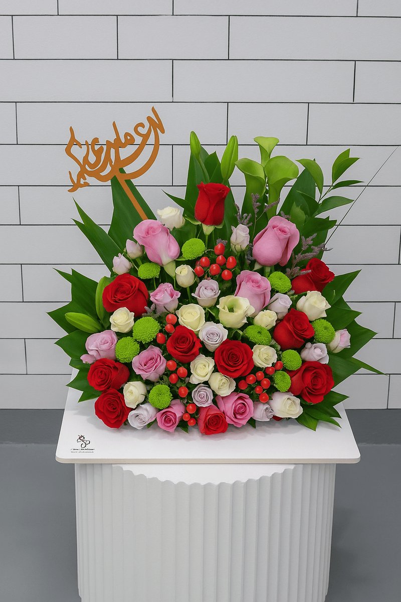 قاعدة خشبية مليئة بالزهور الجميلة،رائعة للمناسبات والهدايا الخاصة.