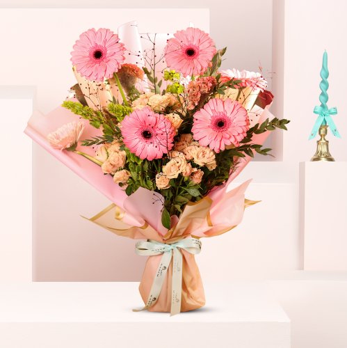 تبرز باقة جلبيرا بأناقتها وتجمع بين أنواع متميزة ومختلفة من الورود المناسبة ذات الألوان الزاهية.