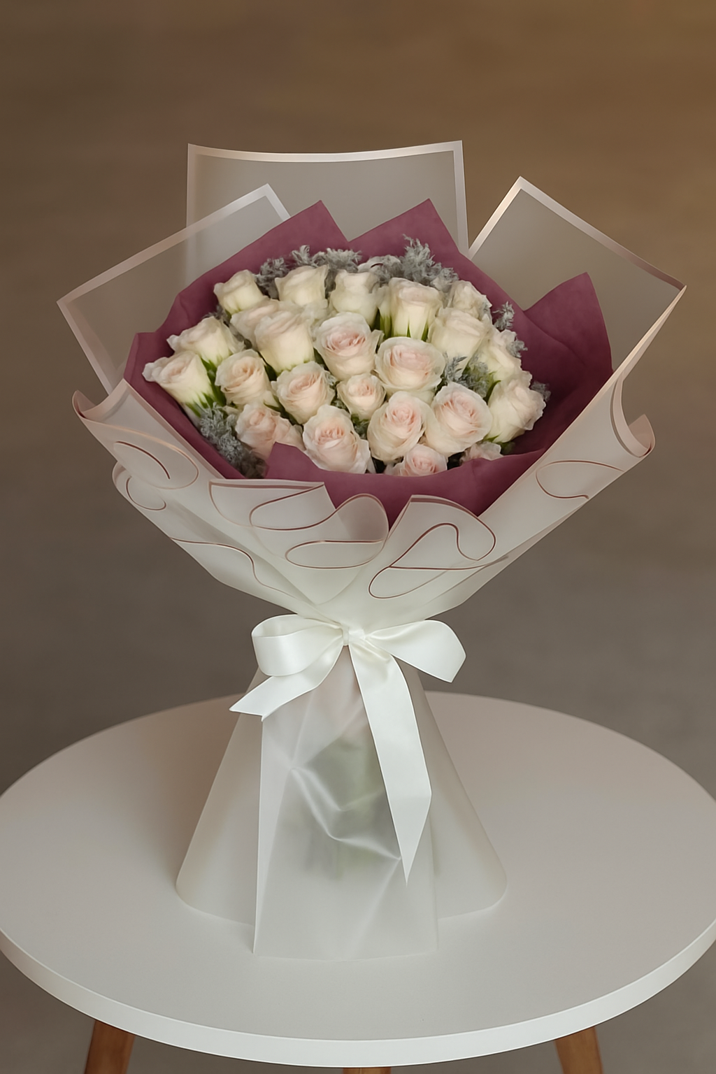 باقة ورود طبيعية ذات ألوان هادئة ، مثالية كهدية للتهنئة والمناسابات يتوفر كتابة كرت باللغة العربية والإنجليزية، الرجاء كتابة المطلوب طباعته في الملاحظات