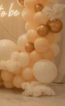 ديكور التوهج الذهبي يجمع بين درجات الأبيض والبيج والذهبي المعدني مع لمسة ضوء ناعمة “Bride to Be”. مثالي لحفلات العروس الفخمة، يضفي أجواء دافئة راقية ولمسة من الفخامة لكل مناسبة مميزة.ديكور التوهج الذهبي يجمع بين درجات الأبيض والبيج والذهبي المعدني مع لمسة ضوء ناعمة “Bride to Be”. مثالي لحفلات العروس الفخمة، يضفي أجواء دافئة راقية ولمسة من الفخامة لكل مناسبة مميزة.
