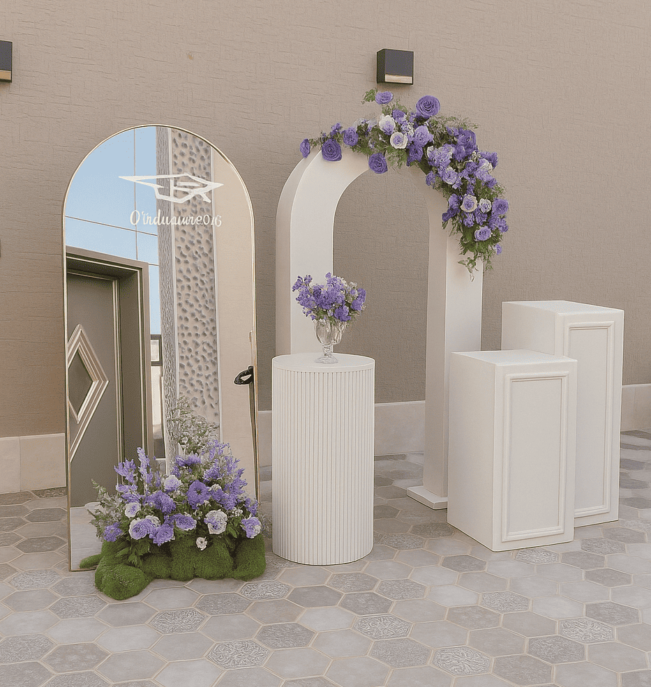 ديكور حفلات راقٍ مع منصة حديثة، قوس مزين بزهور بنفسجية، ومرآة أنيقة للتصوير. مثالي لحفل عيد ميلاد، استقبال مولود، أو مناسبات فاخرة. يمنح الاحتفال لمسة فخامة وجمال ويضيف طابعاً مميزاً لأي مناسبة بحثاً عن ديكور راقٍ وأجواء احتفالية أنيقة.ديكور حفلات راقٍ مع منصة حديثة، قوس مزين بزهور بنفسجية، ومرآة أنيقة للتصوير. مثالي لحفل عيد ميلاد، استقبال مولود، أو مناسبات فاخرة. يمنح الاحتفال لمسة فخامة وجمال ويضيف طابعاً مميزاً لأي مناسبة بحثاً عن ديكور راقٍ وأجواء احتفالية أنيقة.