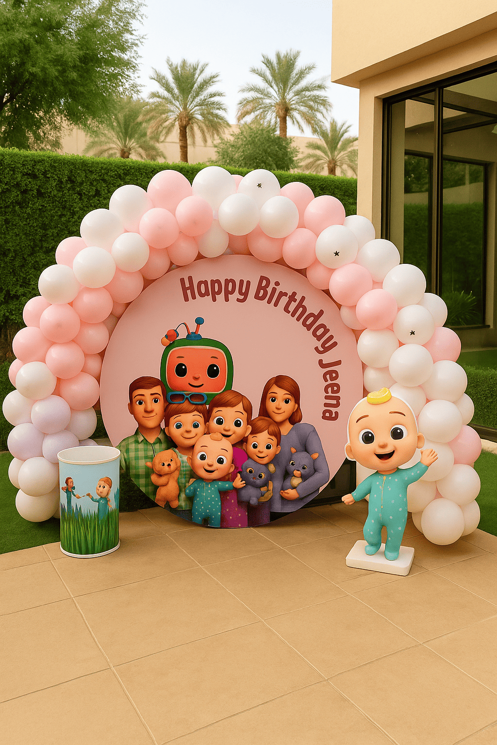 تجهيز عيد ميلاد كوكوميلون مميز مع شخصيات محبوبة وبالونات وردية وبيضاء لخلق أجواء مرحة للأطفال. مثالي للاحتفال بعيد ميلاد ممتع ومليء بالبهجة بلمسة كوكوميلون الجميلة.تجهيز عيد ميلاد كوكوميلون مميز مع شخصيات محبوبة وبالونات وردية وبيضاء لخلق أجواء مرحة للأطفال. مثالي للاحتفال بعيد ميلاد ممتع ومليء بالبهجة بلمسة كوكوميلون الجميلة.