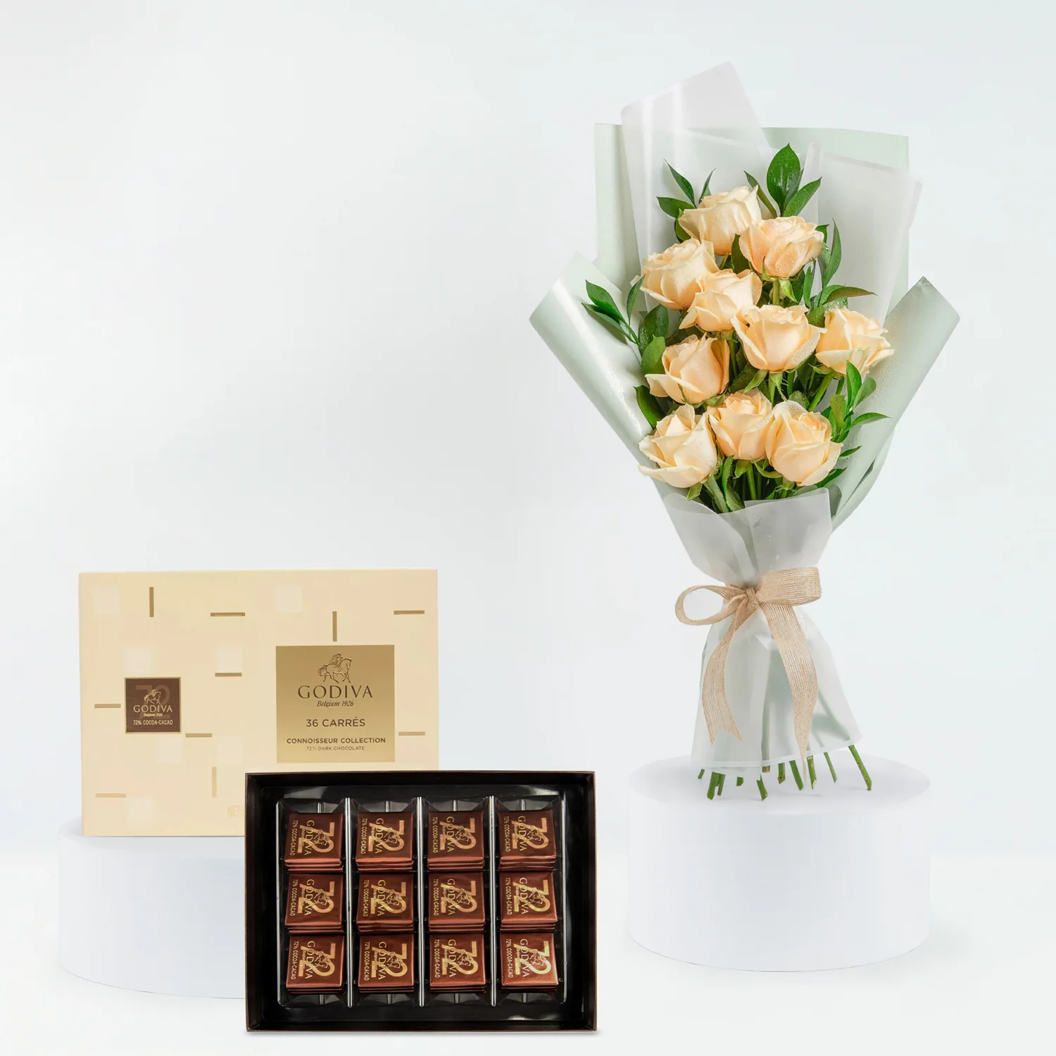 - 1 بوكس شوكولاتة جوديفا 36 قطعة - 10 وردات - تغليف جميل - 1 شريط"