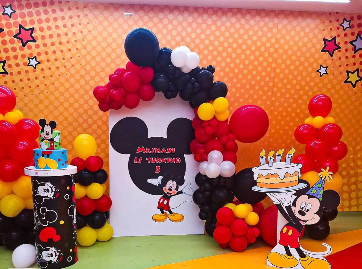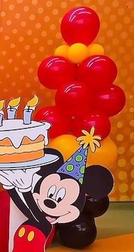 ديكور عيد ميلاد ميكي ماوس مليء بالألوان مع بالونات حمراء وصفراء وسوداء وشخصيات مرحة. مثالي لحفلات الأطفال ويضيف أجواء ممتعة ومبهجة لأي احتفال بعيد ميلاد بديكور مستوحى من عالم ديزني.ديكور عيد ميلاد ميكي ماوس مليء بالألوان مع بالونات حمراء وصفراء وسوداء وشخصيات مرحة. مثالي لحفلات الأطفال ويضيف أجواء ممتعة ومبهجة لأي احتفال بعيد ميلاد بديكور مستوحى من عالم ديزني.
