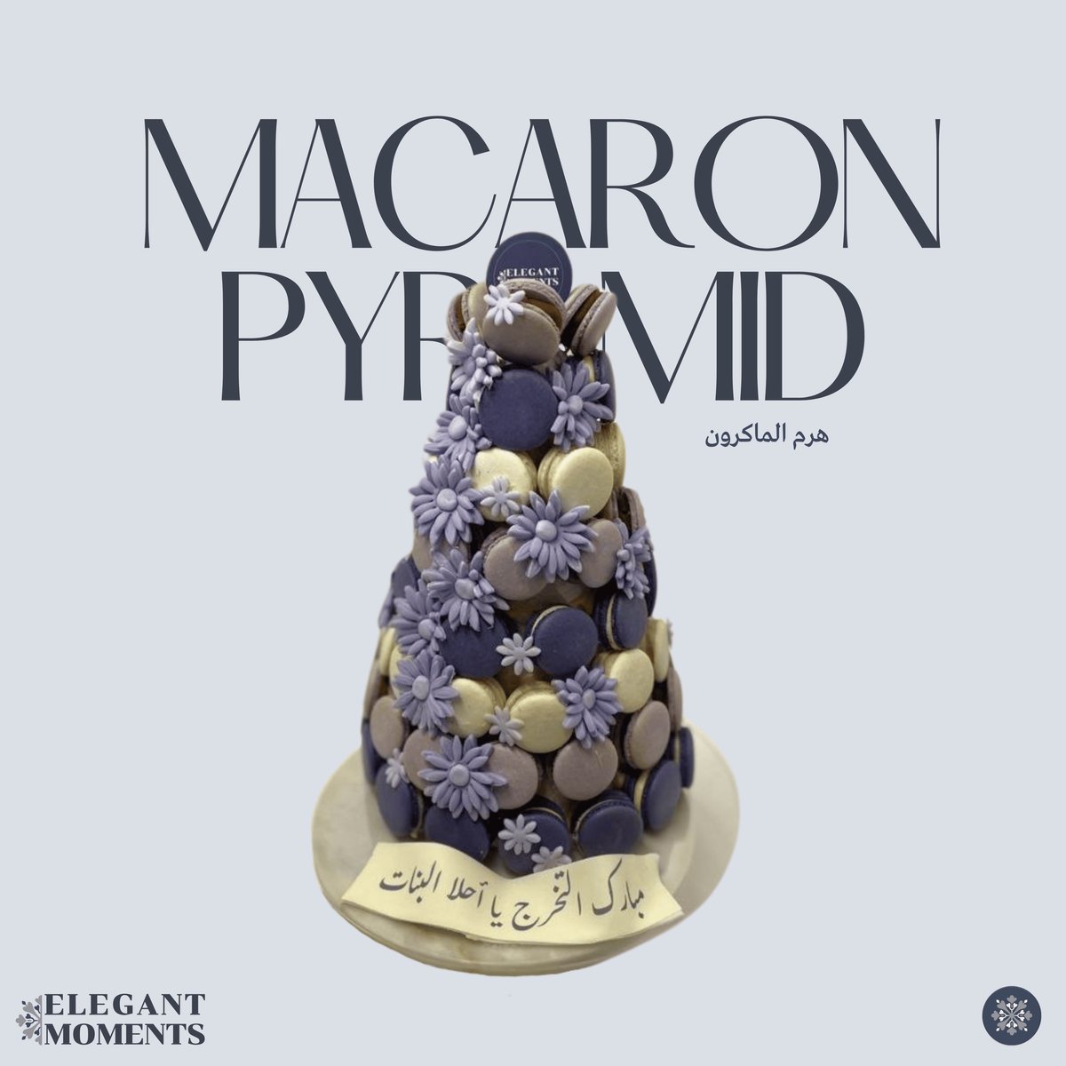 هرم ماكرون مزين بالورد يحتوي على ٧٠ الى ٧٥ قطعة