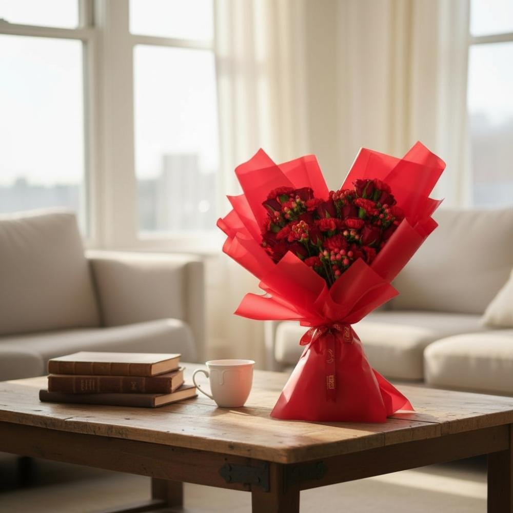تنسيق القلب العاشق من متجر ليلي يجمع 13 بيبي روز أحمر مع 20 زهرة كرنشون و10 زهور هايبركون. تصميم فاخر يجسّد الحب والرومانسية بتنسيق أنيق وكثافة جذابة، مثالي للمناسبات العاطفية والتعبير عن المشاعر بلمسة راقية.