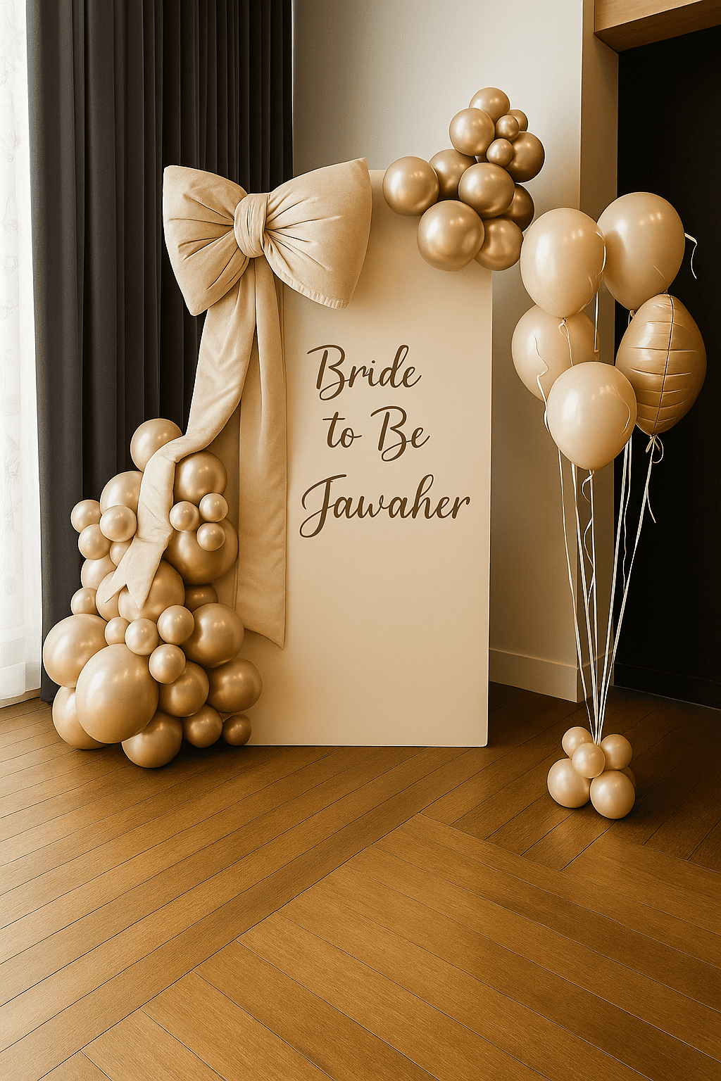ديكور الفيونكة الذهبية بتصميمه الفخم ولمساته اللامعة يضيف أجواء راقية ومميزة لأي حفلة عروس. الألوان الذهبية والفيونكة الكبيرة تعطي إحساس بالفخامة والرقة، مثالي لتصوير لحظات ما قبل الزواج بطريقة أنيقة ودافئة.ديكور الفيونكة الذهبية بتصميمه الفخم ولمساته اللامعة يضيف أجواء راقية ومميزة لأي حفلة عروس. الألوان الذهبية والفيونكة الكبيرة تعطي إحساس بالفخامة والرقة، مثالي لتصوير لحظات ما قبل الزواج بطريقة أنيقة ودافئة.