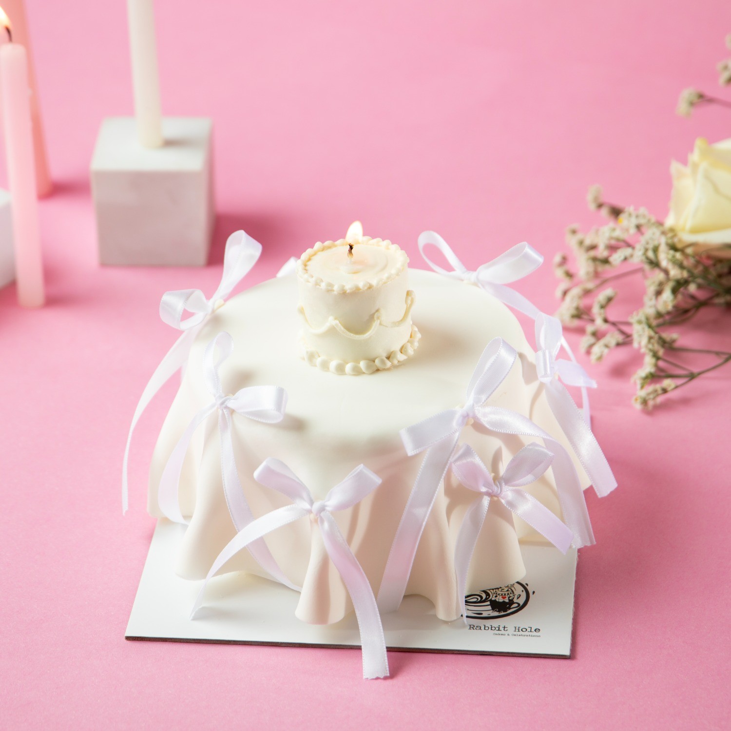 كيكة ٥ إنش الحشوة من اختيارك (الصغيرة شوكوليت فقط – لا يمكن تغييرها) لون الريبوبنز حسب التوفر الكتابة على كارد منفصل فقط الصوديوم: غير مرتفع