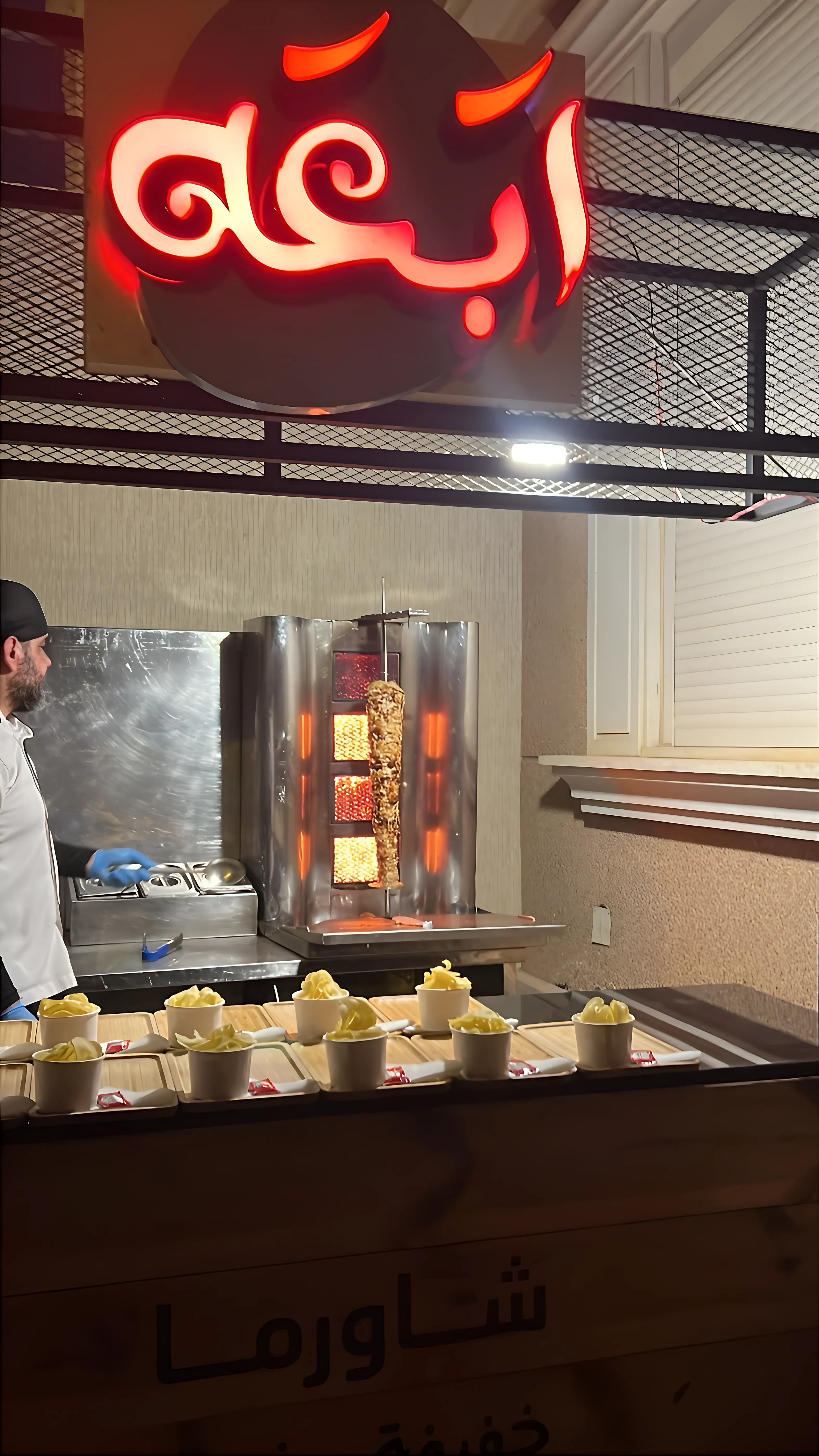 ستيشن شاورما يتكون من: - 40 ساندويش شاورما ابعة - 40 شيبس ابعة - 40 مشروب غازي * في حال اختيار لحم يستبدل الشيبس ب حمص