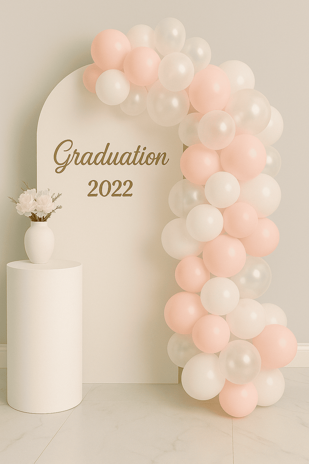 قوس تخرج بالبالونات باللون الوردي الناعم والأبيض مع خلفية أنيقة وعصرية. مثالي لحفلات التخرج، خلفيات التصوير، وديكور تخرج راقٍ يبرز لحظة الإنجاز بأسلوب بسيط وفاخر.قوس تخرج بالبالونات باللون الوردي الناعم والأبيض مع خلفية أنيقة وعصرية. مثالي لحفلات التخرج، خلفيات التصوير، وديكور تخرج راقٍ يبرز لحظة الإنجاز بأسلوب بسيط وفاخر.