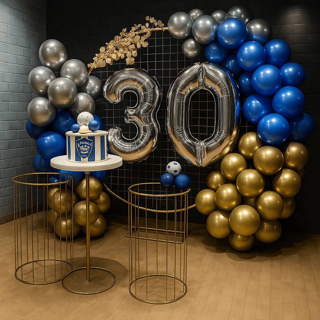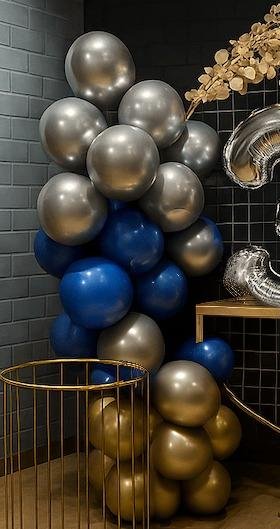 ديكور يجمع بين الأزرق الملكي والذهبي والفضي ليمنح أجواء فخمة وعصرية لأي احتفال ميلاد. تصميم أنيق يناسب المناسبات الكبيرة ويضفي لمسة من الرقي والتميّز على كل لحظة.ديكور يجمع بين الأزرق الملكي والذهبي والفضي ليمنح أجواء فخمة وعصرية لأي احتفال ميلاد. تصميم أنيق يناسب المناسبات الكبيرة ويضفي لمسة من الرقي والتميّز على كل لحظة.