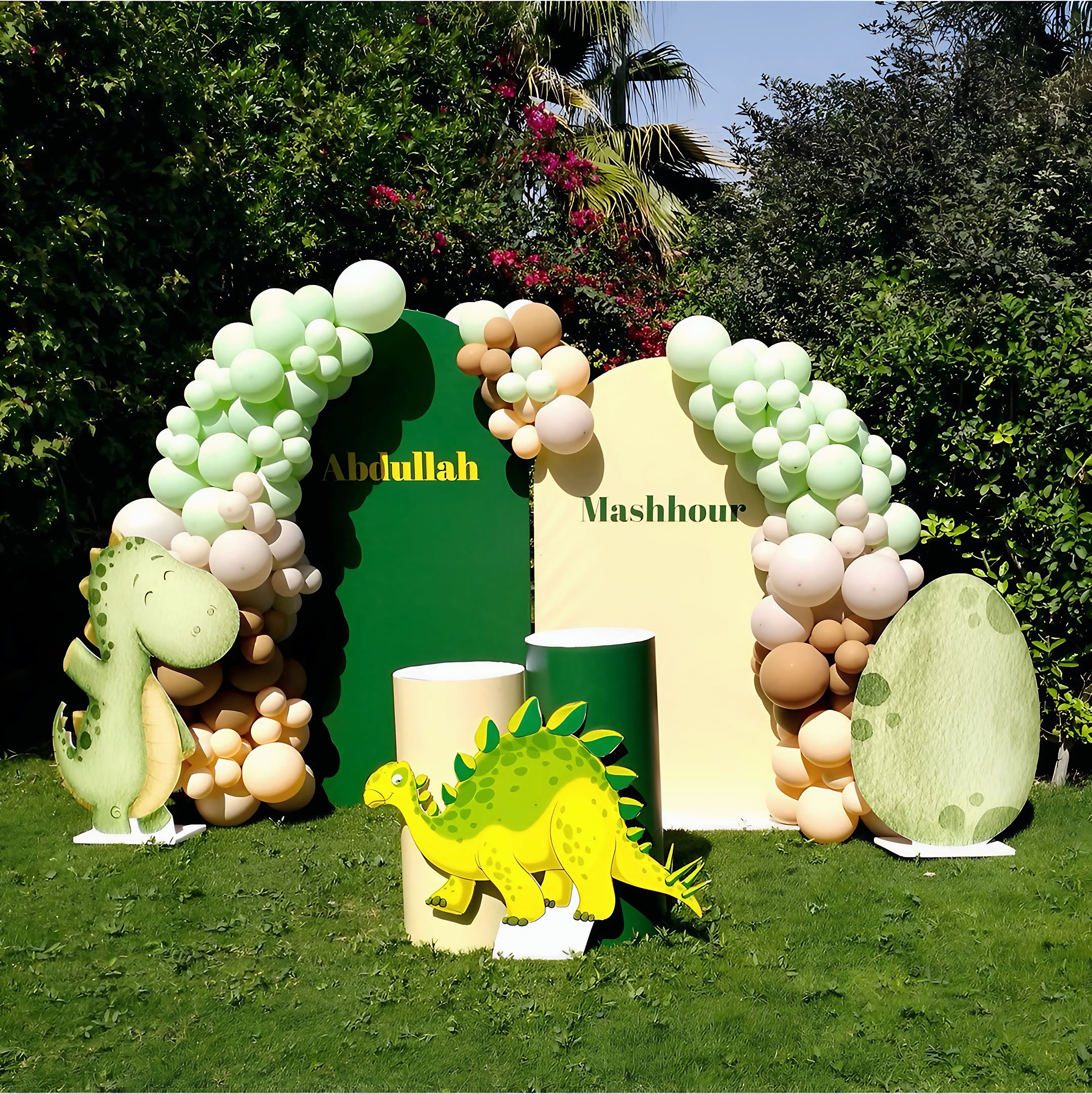ديكور حفلة عيد ميلاد للأطفال بتصميم ديناصورات ممتع ومليء بالبالونات والألوان. مثالي لحفلات عيد الميلاد ولتجهيزات تضيف أجواء احتفال مميزة وممتعة للأطفال.