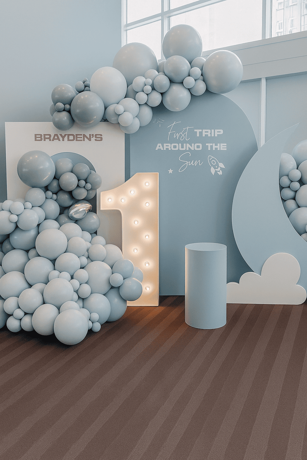 ديكور حفلة عيد ميلاد سماوي بتصميم ناعم وبالونات زرقاء فاتحة وخلفية أنيقة، مثالي لحفلات الأطفال ويضيف لمسة رقيقة لأي احتفال بعيد ميلاد. تنسيق رائع لمن يبحث عن ديكور مميز لحفلة عيد ميلاد للأطفال.ديكور حفلة عيد ميلاد سماوي بتصميم ناعم وبالونات زرقاء فاتحة وخلفية أنيقة، مثالي لحفلات الأطفال ويضيف لمسة رقيقة لأي احتفال بعيد ميلاد. تنسيق رائع لمن يبحث عن ديكور مميز لحفلة عيد ميلاد للأطفال.