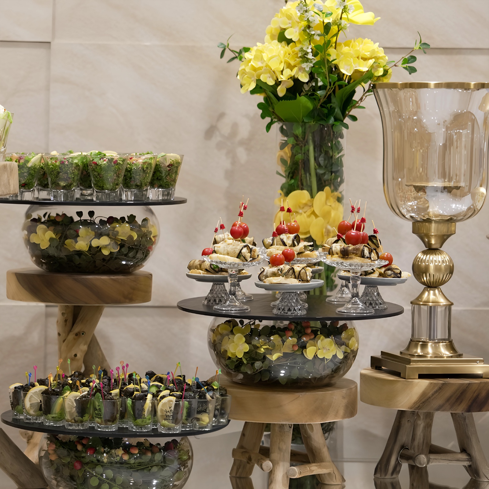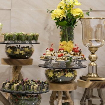 * الساندويتشات - ساندويتش حلوم - كلوب ساندويتش - كرواسون التونة - ساندويتش السلمون - كرواسون الفيتا والخيار - رول ستيك فيليه - ساندويتش رول الكباب - رول شاورما اللحم - دجاج بالكريمة - ساندويتش فول - ساندويتش فلافل - ساندويتش موزاريلا بيستو - سلايدر اللحم - ساندويتش الدجاج بالكاجو - سلايد دجاج * السلطات - سلطة الكينوا مع التوت - سلطة الشمندر - سلطة سيزر بالدجاج * السناك - كبة أرمنية - كبة دجاج - داينمت شريمب بانكوك - داينمت تشيكن - رولات باذنجان مع الحلوم - كانابيه السلمون - بطيخ مع جبنة الفيتا - بي بي مازرولا - رول جبنة الفيتا مع الخيار - بروشيتا الفطر - بروشيتا الطماطم - بروشيتا الزيتون * الحلويات - ميني سويت ميكس (تشكيلة حلويات صغيرة) - فرنش توست - ميني مصابيب - سلطة فواكه مشكلة - اعواد سلطة الفواكه - كيك كبير * المشروبات - جالون عصير كوكتيل - جالون عصير مانجو - جالون عصير برتقال - شاي أحمر وأخضر / سكر / أعواد القرفة - قهوة عربية - تمر - زجاجة ماء صغيرة (VIP) - إسبريسو - قهوة أمريكية
